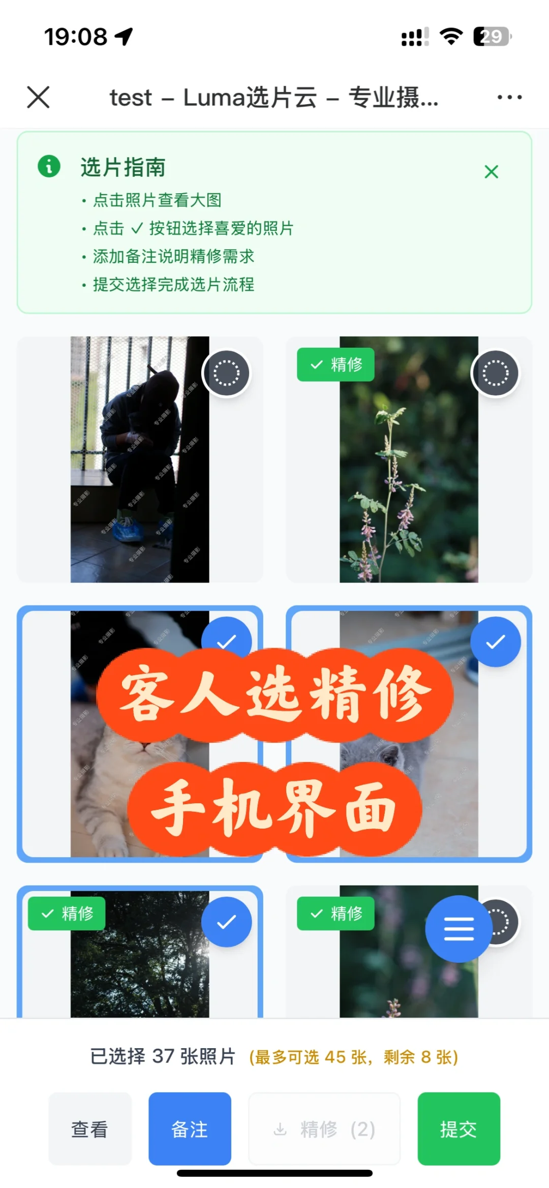 ✅需要精修的直接勾选,提交就可以了,对于客人来说节省了超多时间,尤其是婚礼的客人