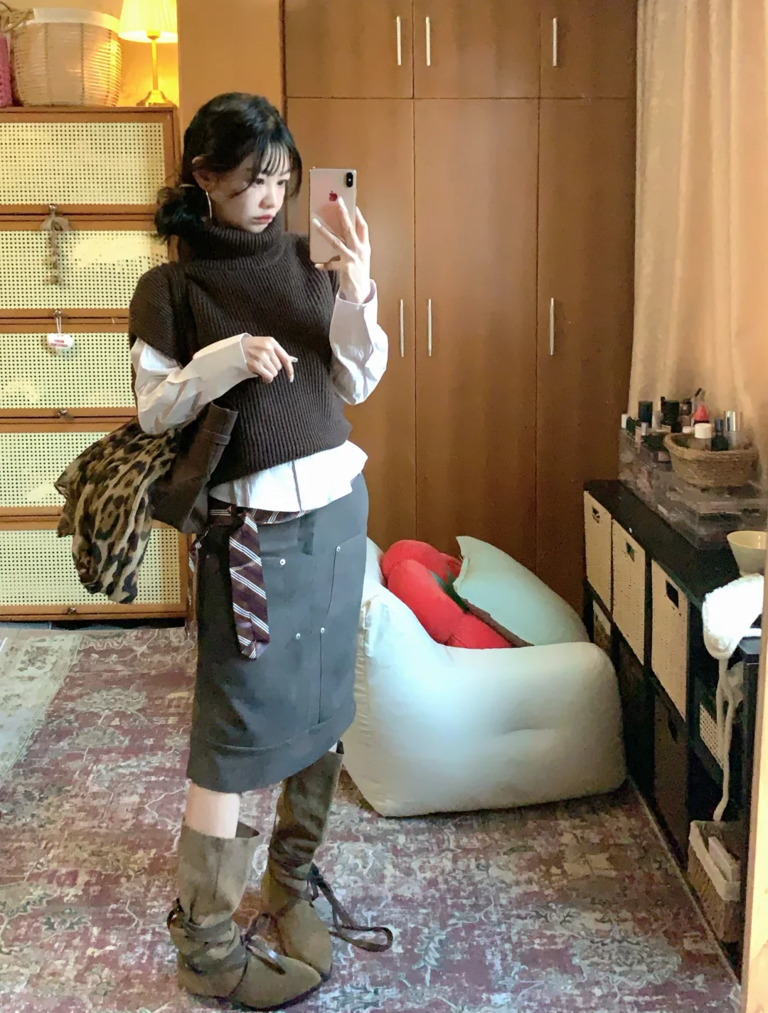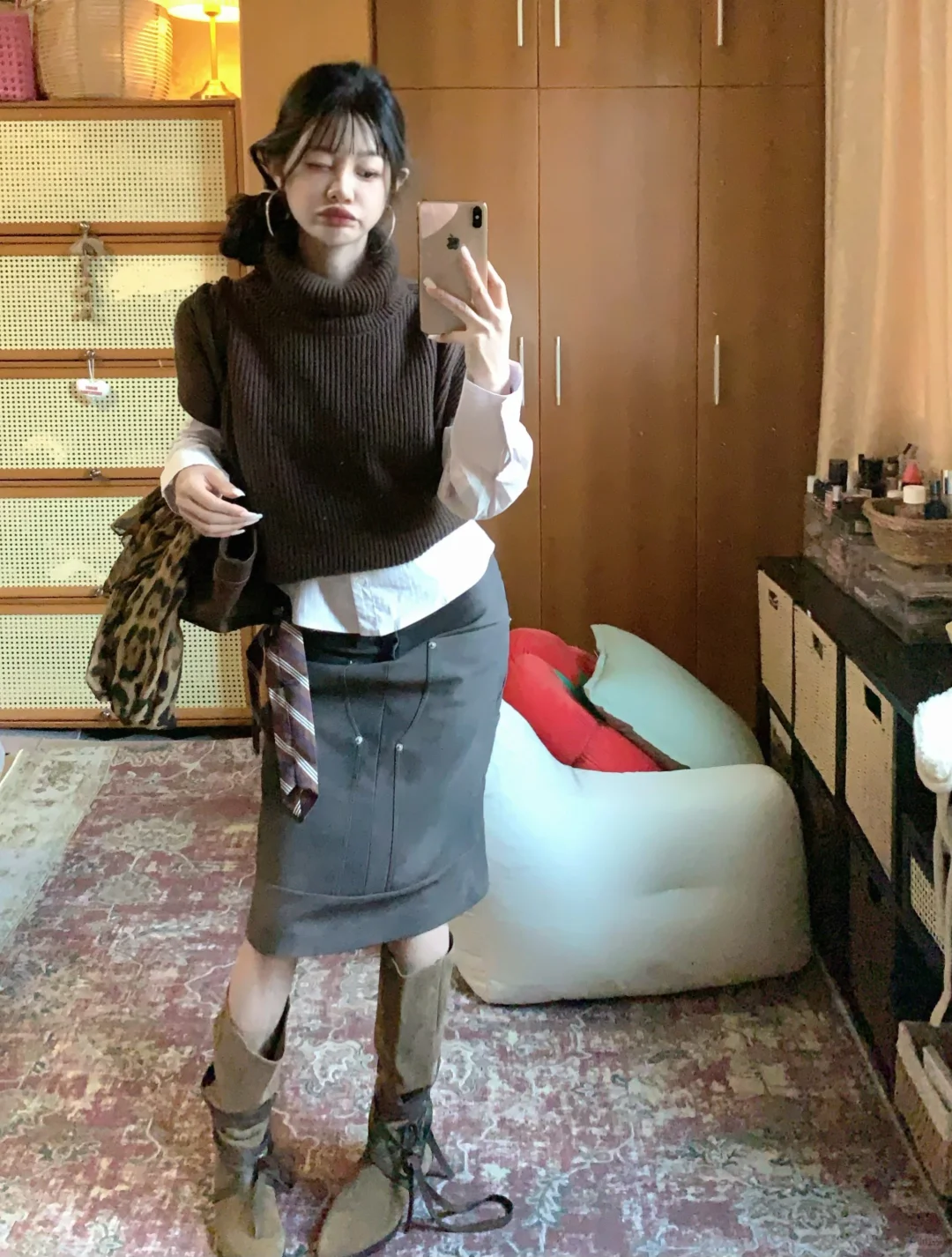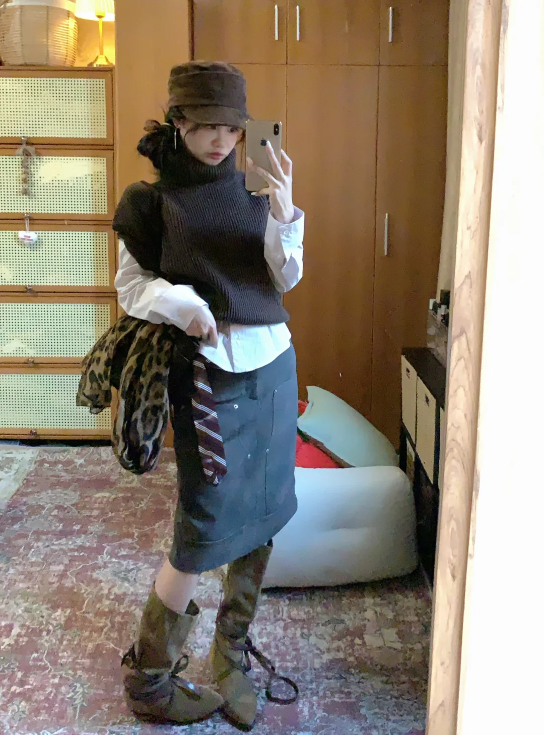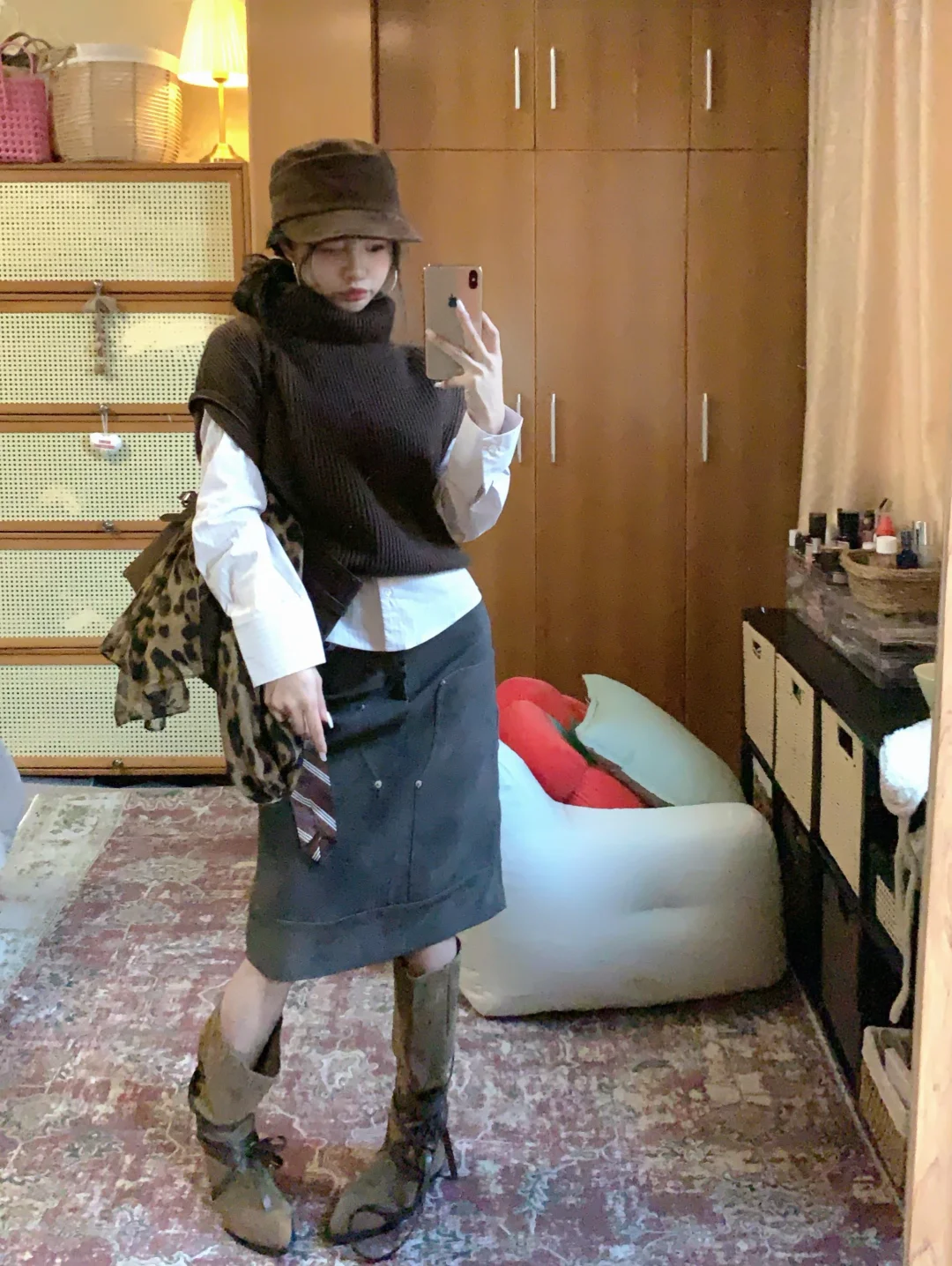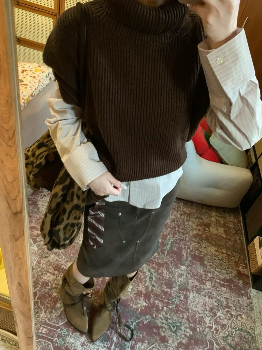 高领针织背心➕麂皮裙