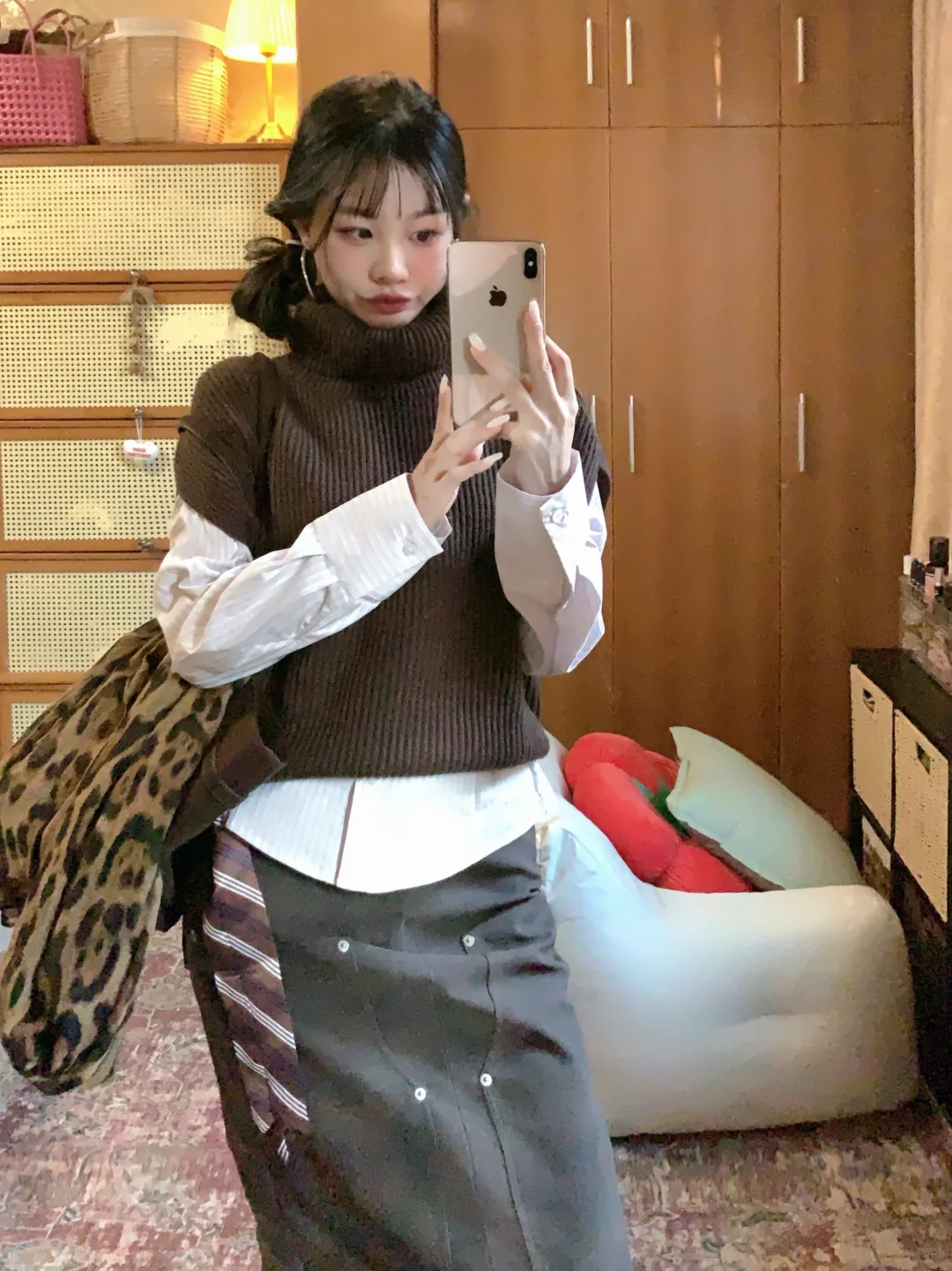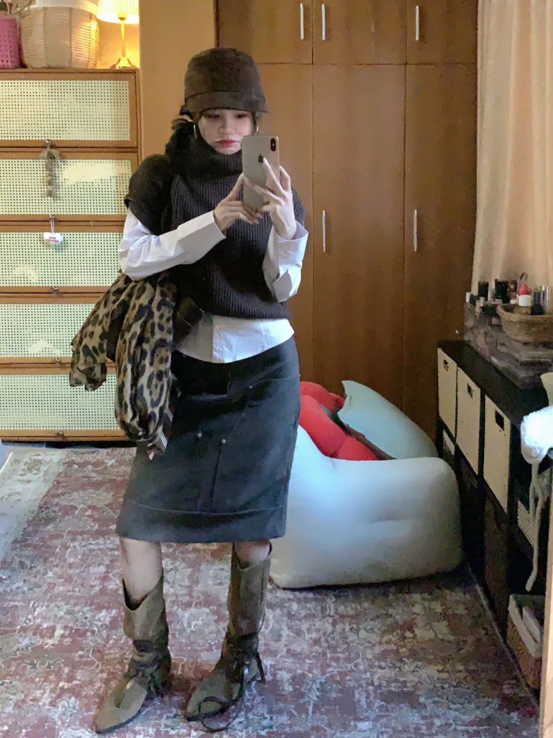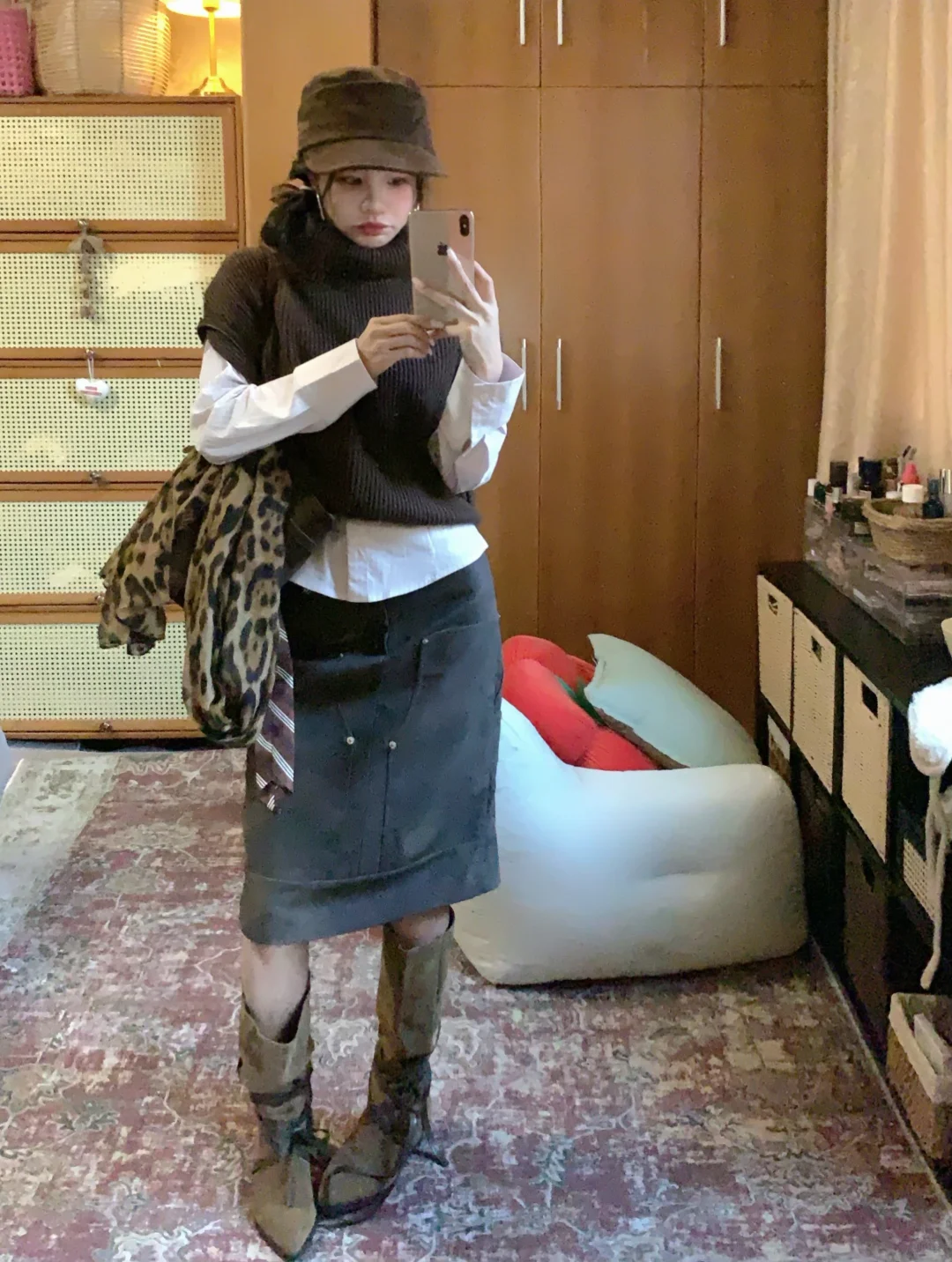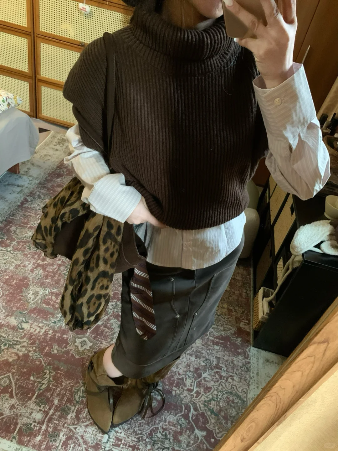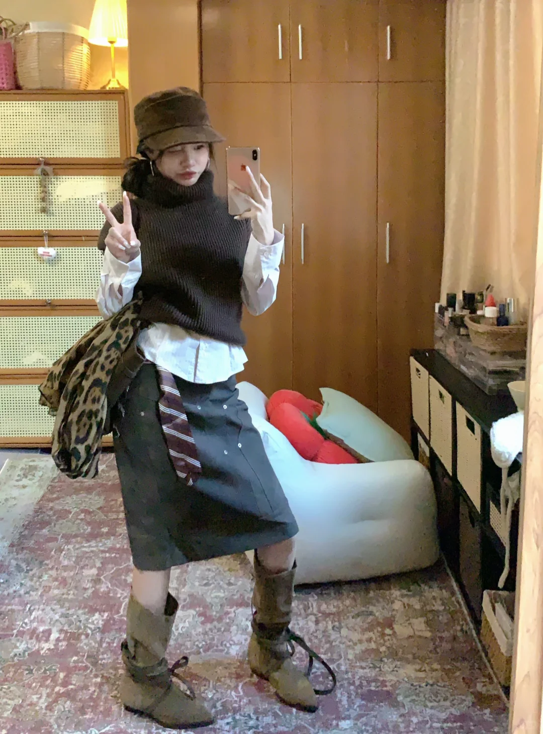 高领针织背心➕麂皮裙