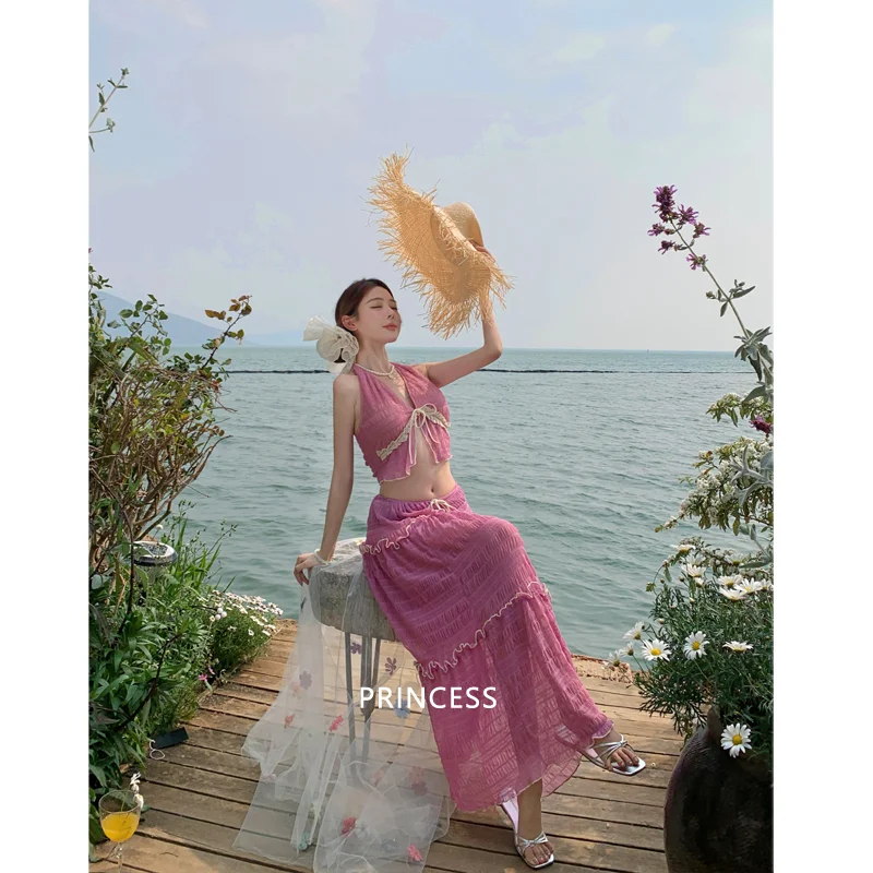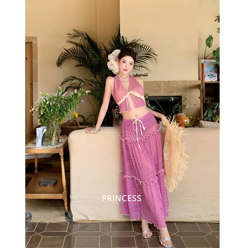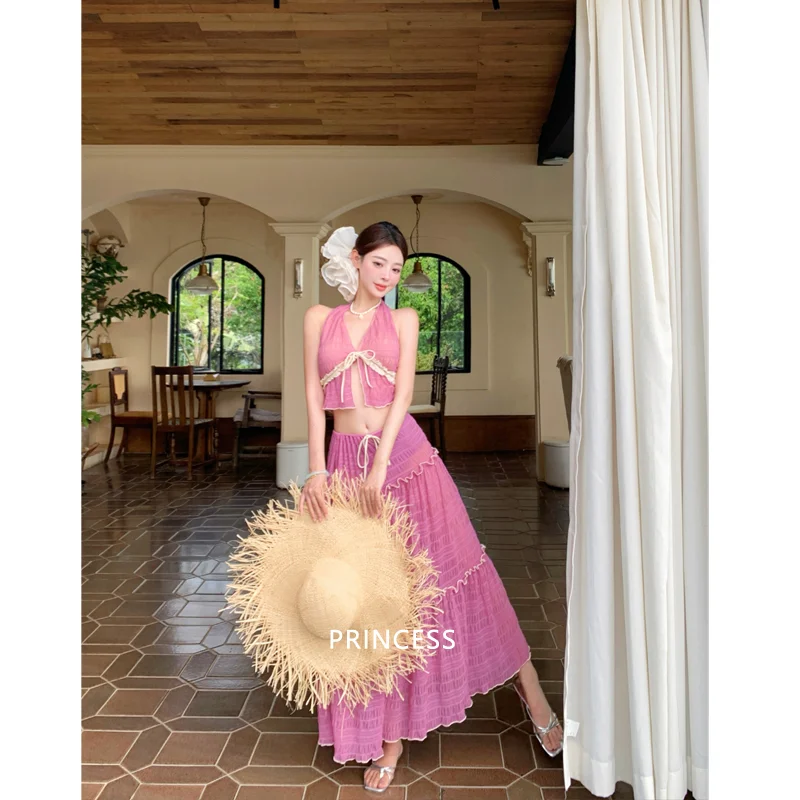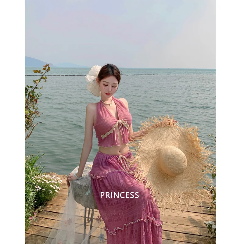 🍰 这件比基尼是分体式的,上身是小吊带设计,胸前的小褶皱设计超级有设计感,还能巧妙地修饰胸型,让胸部看起来更挺拔。下身是高腰的三角裤,高腰的设计能够拉长腿部线条,让腿看起来又细又长。而且整体颜色是温柔的浅粉色,搭配上精致的小珍珠装饰,真的超级少女心,穿上它仿佛就是海边的在逃公主。