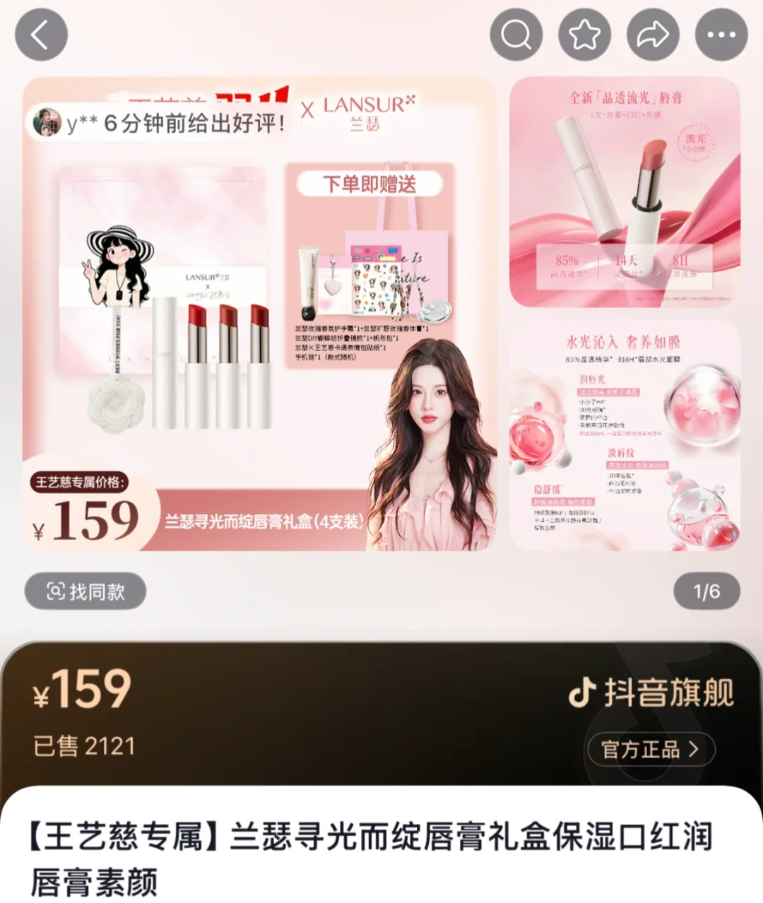 总而言之我觉得这次王艺慈和兰瑟的联合套装不是一真爱粉以外的人值得入的产品 我相信她是为这个产品付出心血了的 在单个调色和宣传图上还是能感受到想做出来什么样的 但在质地选择和套装思维上我觉得没有充分考虑到唇膏质地是否真的比唇泥镜面更适合裸色系 套装的色阶是否真的比起单只购入的更合理起到补充作用 不然真的会因为是新手maker而给消费者呈现出固然无错但也不够用的安全牌