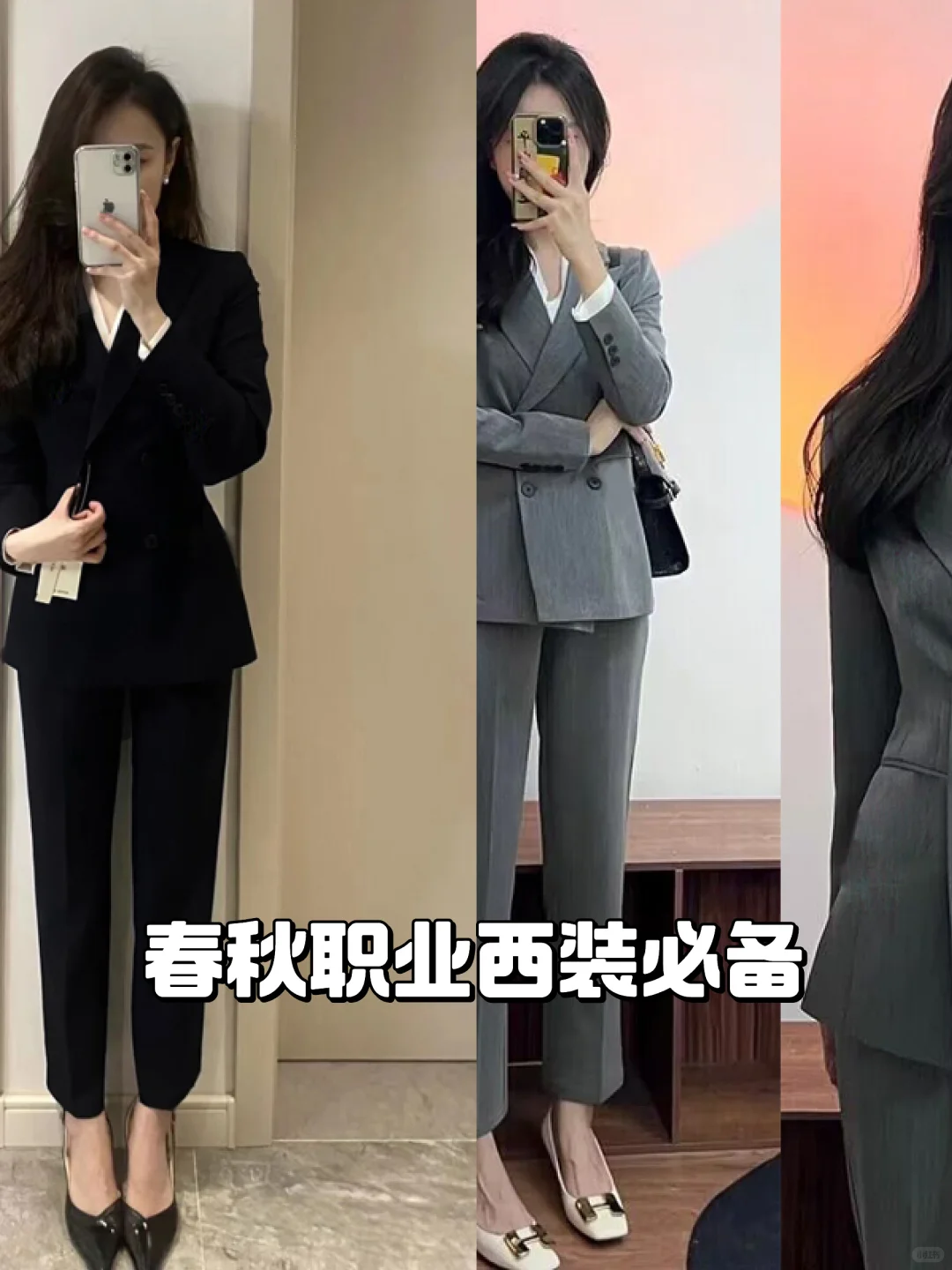💼面试穿搭,告别平庸!这款春秋女神范时尚韩版修身灰色职业高级感洋气显瘦正装商务西装套装,绝对让你在职场上大放异彩!