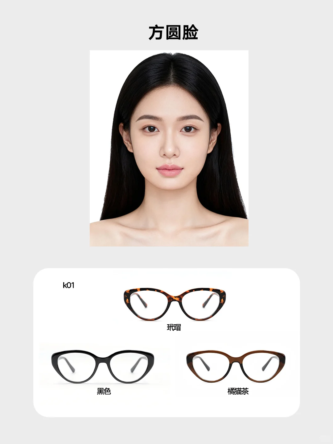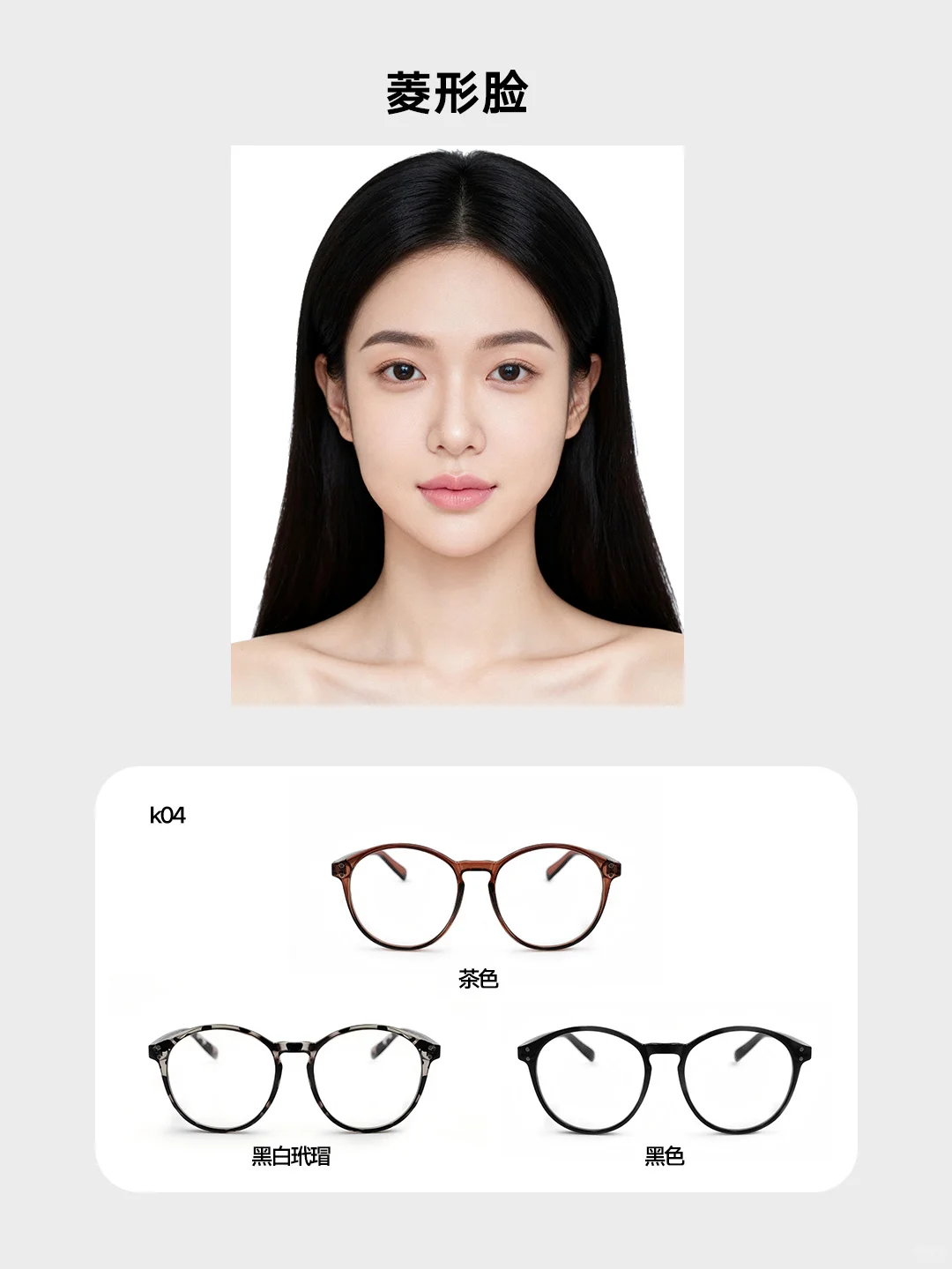 天生的百搭脸型,无论是文艺复古的圆框、干练利落的方框,还是时尚感满满的猫眼框、温柔甜美的椭圆框都能轻松hold住,可根据穿搭风格切换镜框,打造甜美、知性、酷飒等多元形象👗。