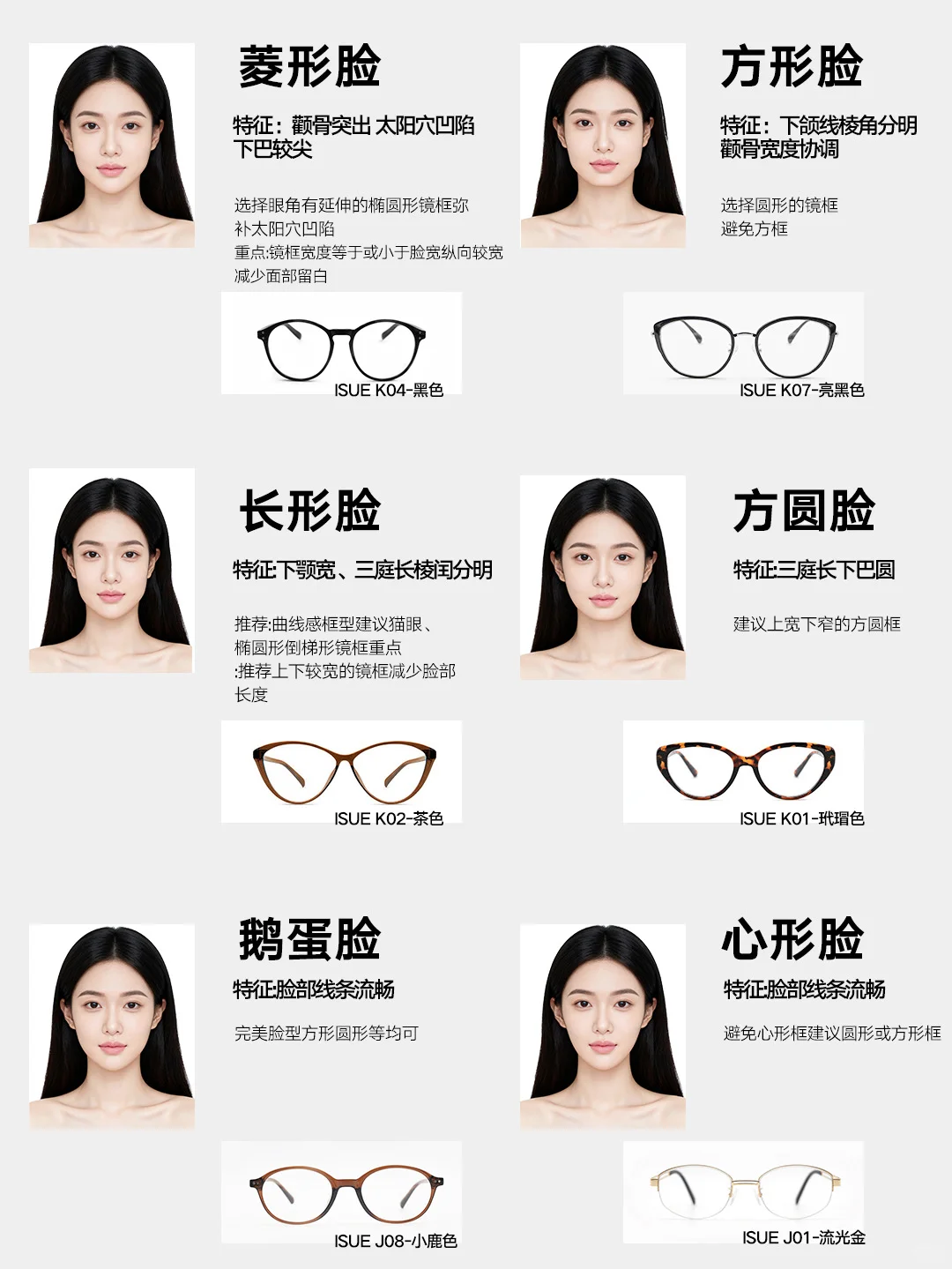 #ISUE眼镜 #根据脸型选镜框 #眼镜新选择 #眼镜搭配脸型 #眼镜框方圆脸 #不同脸型选择墨镜 #修饰脸型的眼镜 #适合方圆的框架眼镜 #眼睛框种草 #眼镜框
