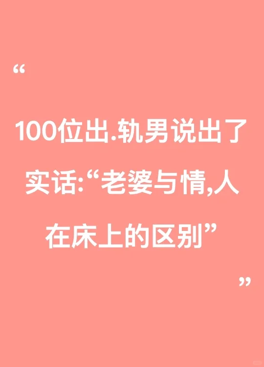 100位出轨男说出了实话