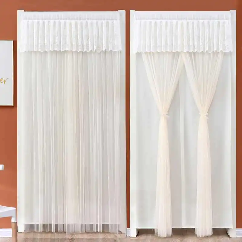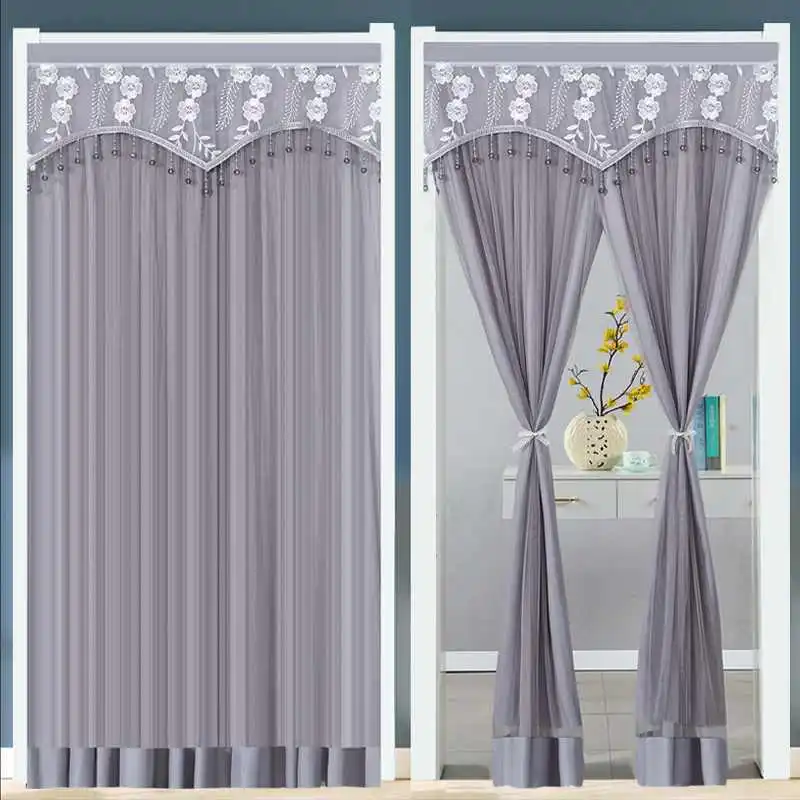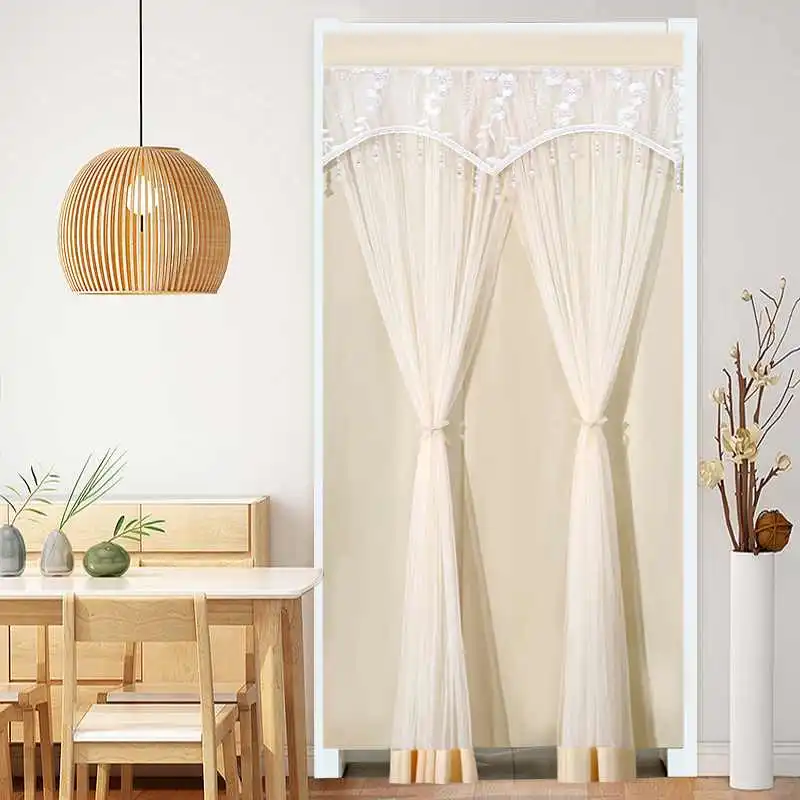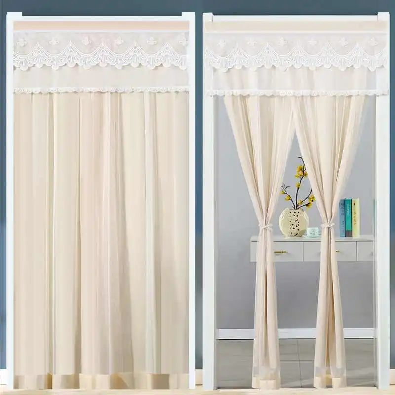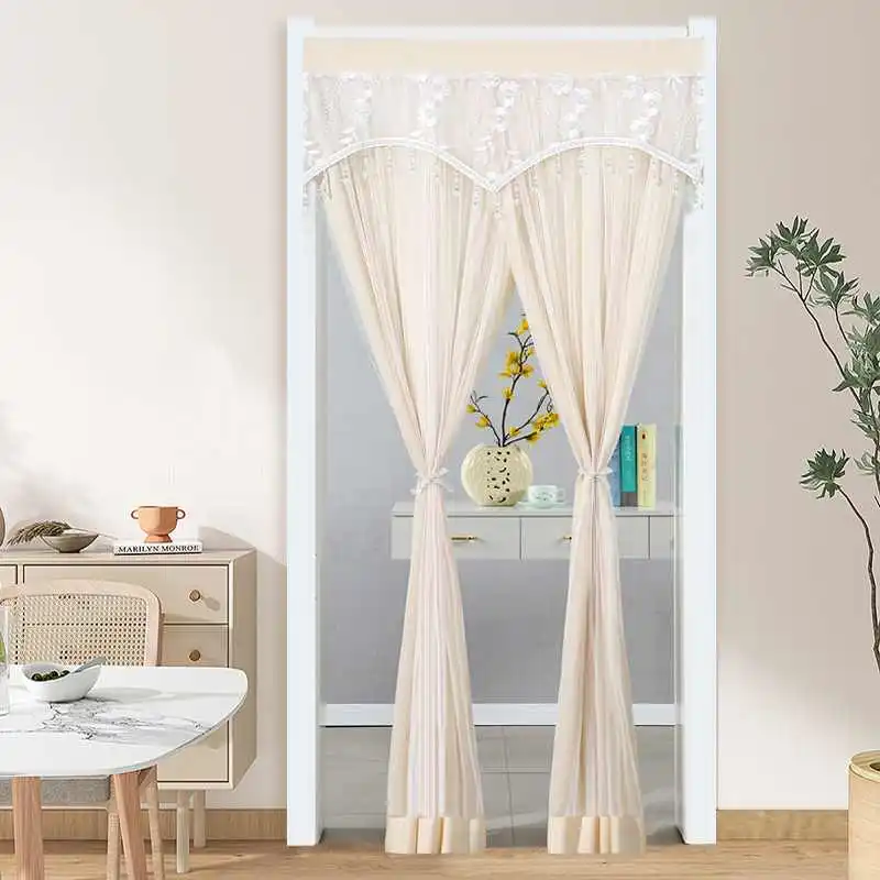 法式蕾丝门帘防蚊家用四季纱帘通用隔断帘免