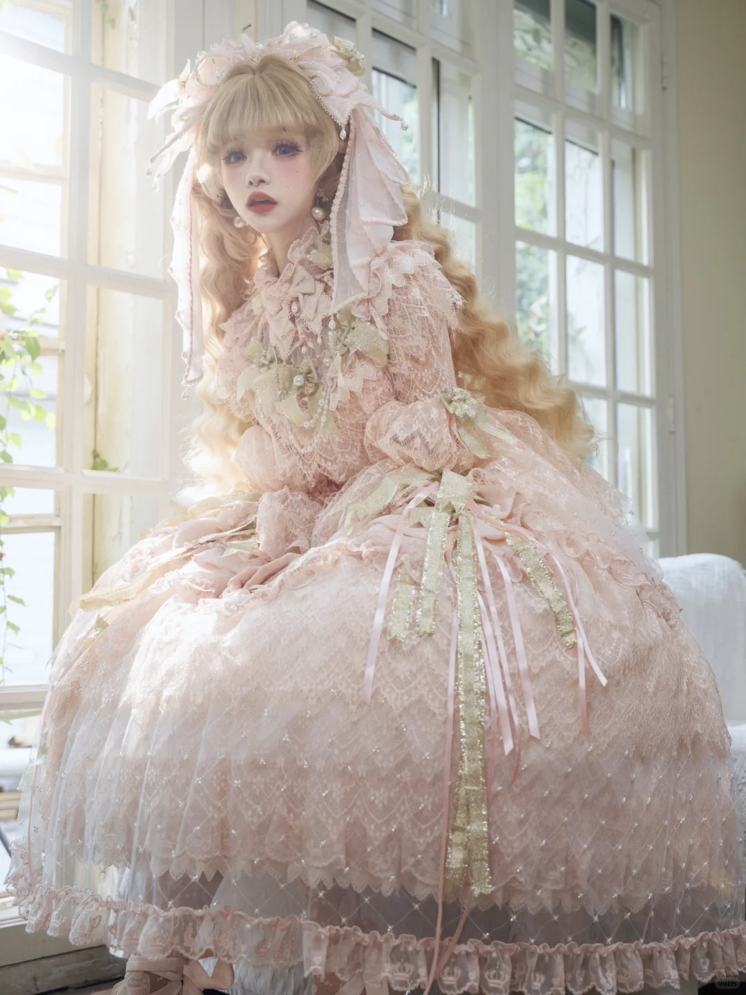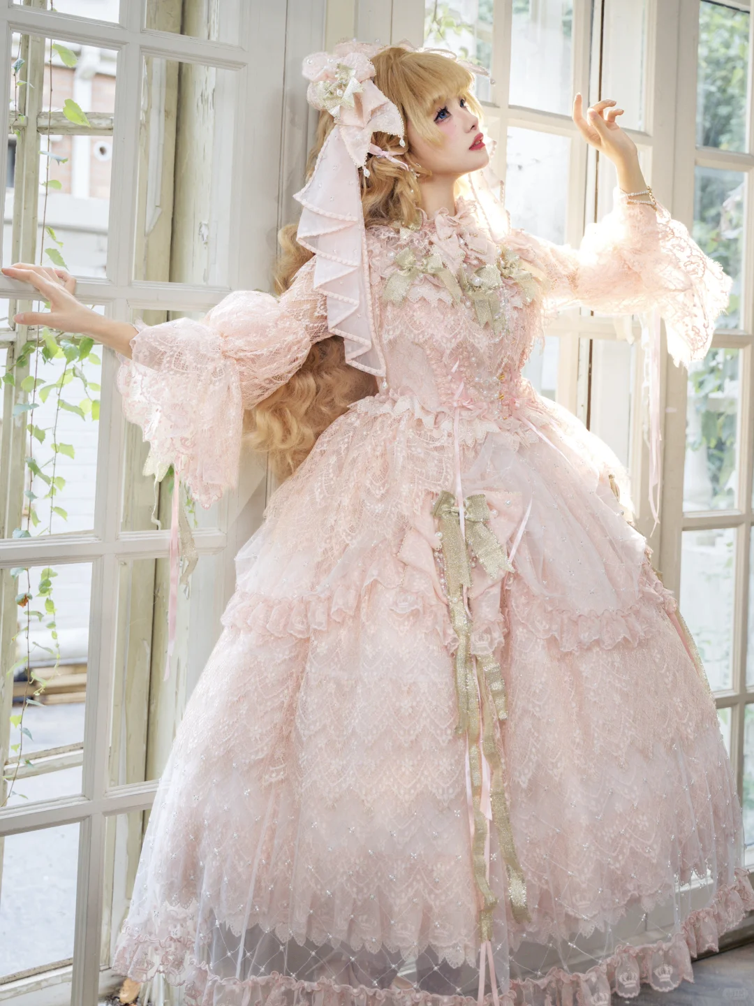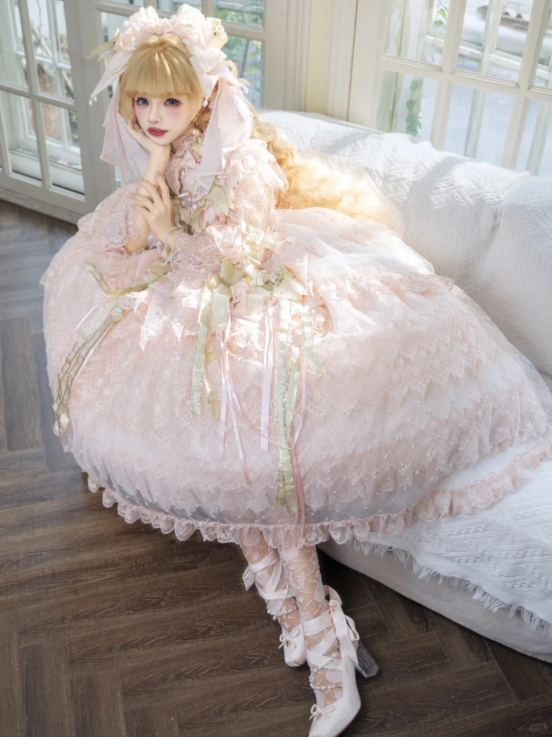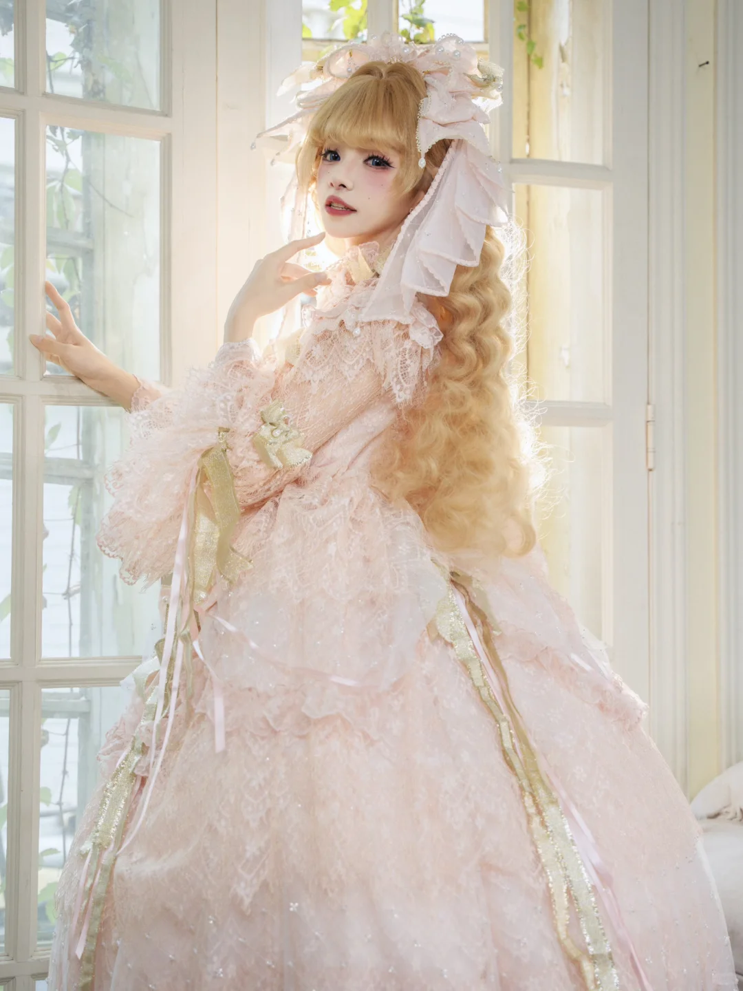 裹着细碎珠光摇曳生姿,把春天第一缕晨曦与晚霞最柔和的粉色一同揉进裙摆中。
