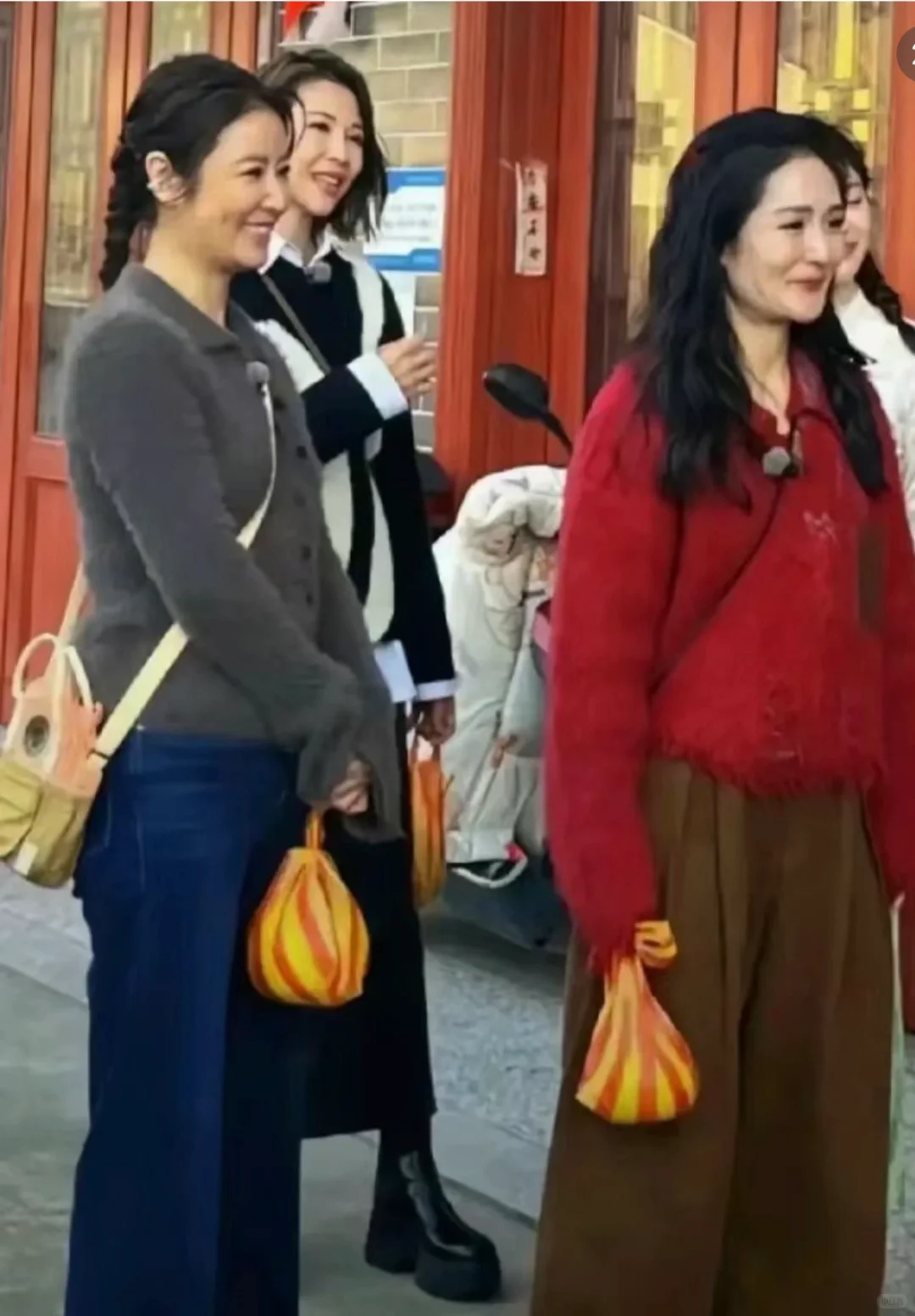 图一和图二的林心如,给人一种土气的感觉,相反看谢娜满满的松弛感。图三的林心如终于有了同色系穿搭,高级感一下子就提升了。