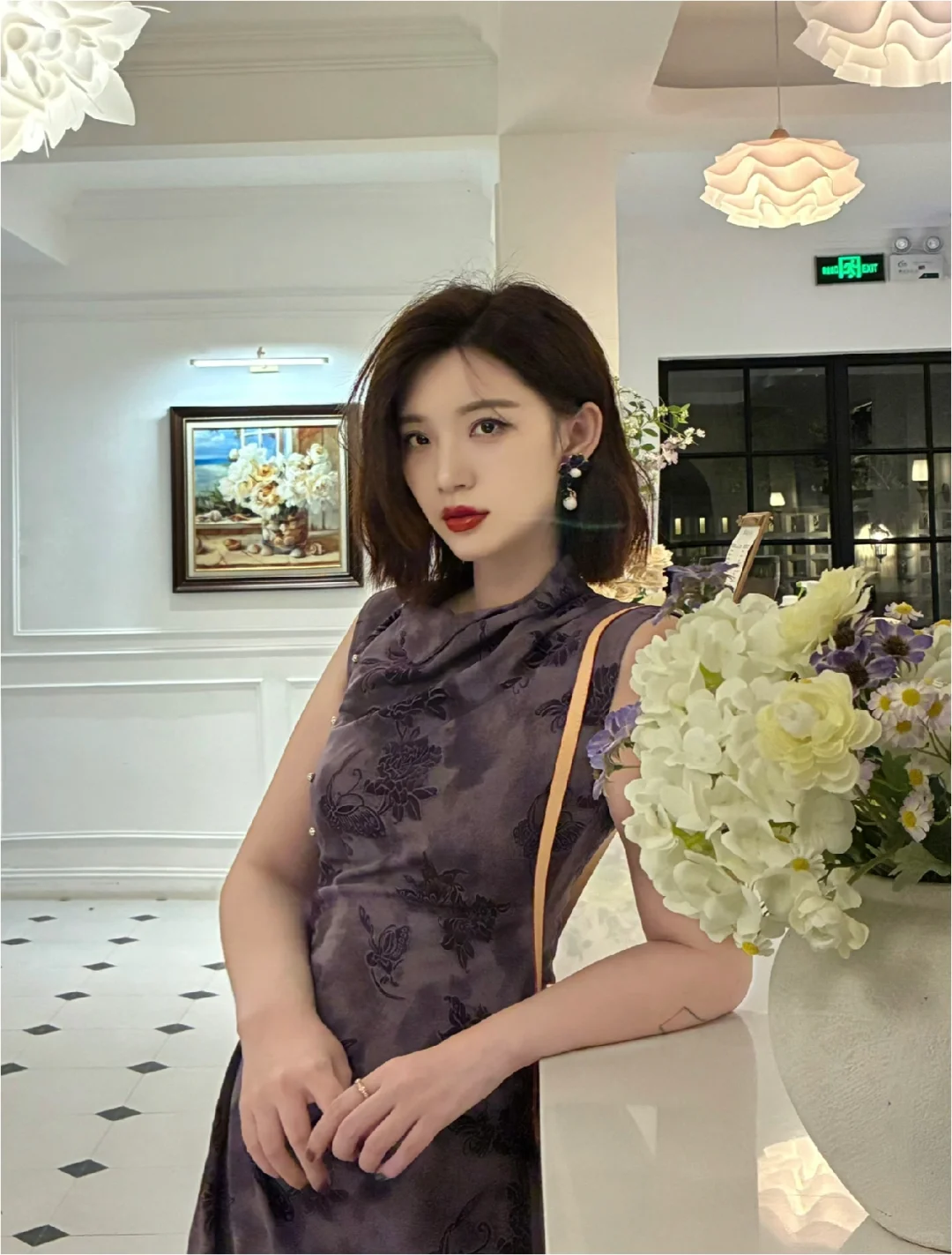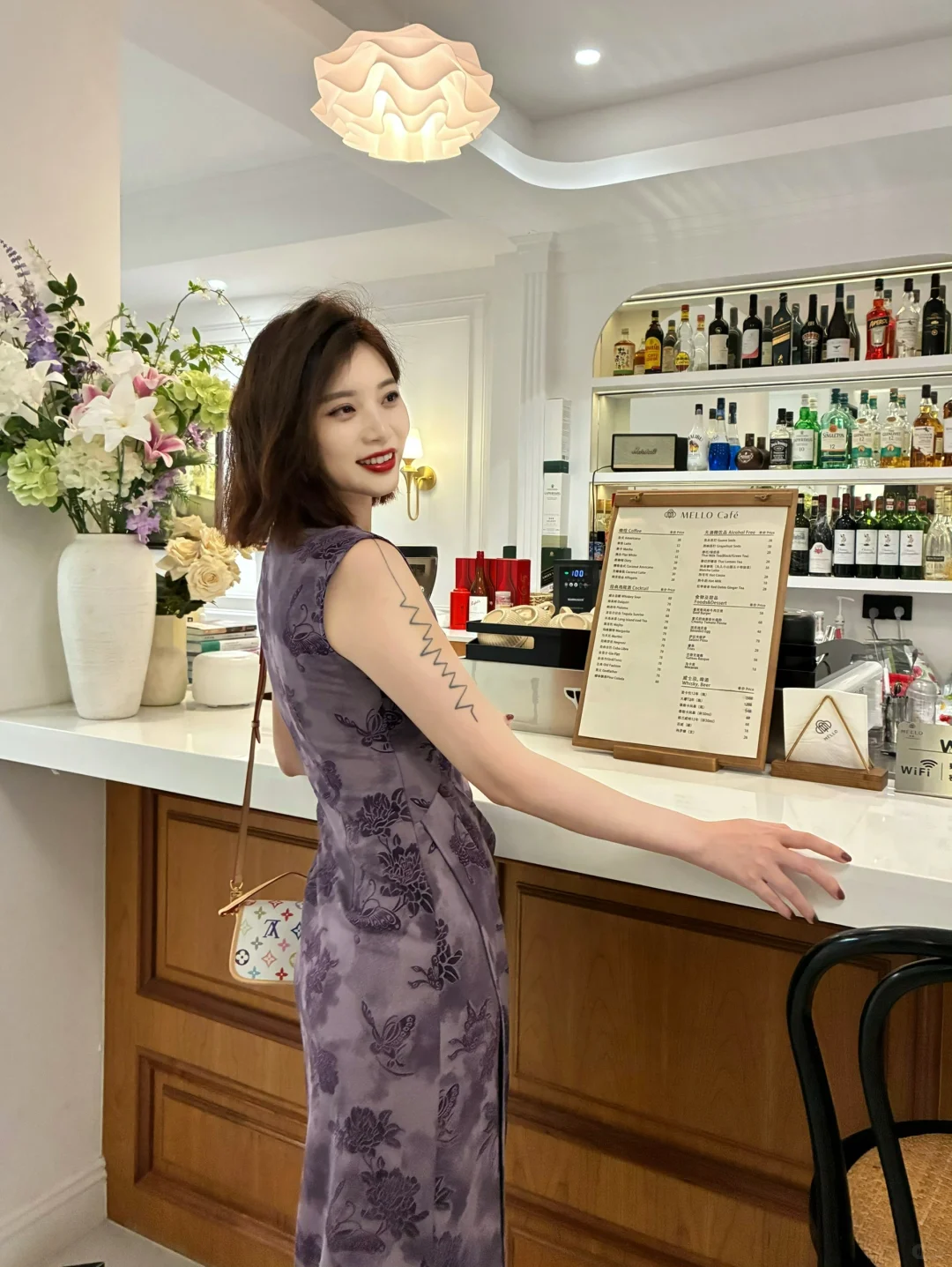 旗袍OOTD💜妹妹说,紫色很有韵味🟣✔️