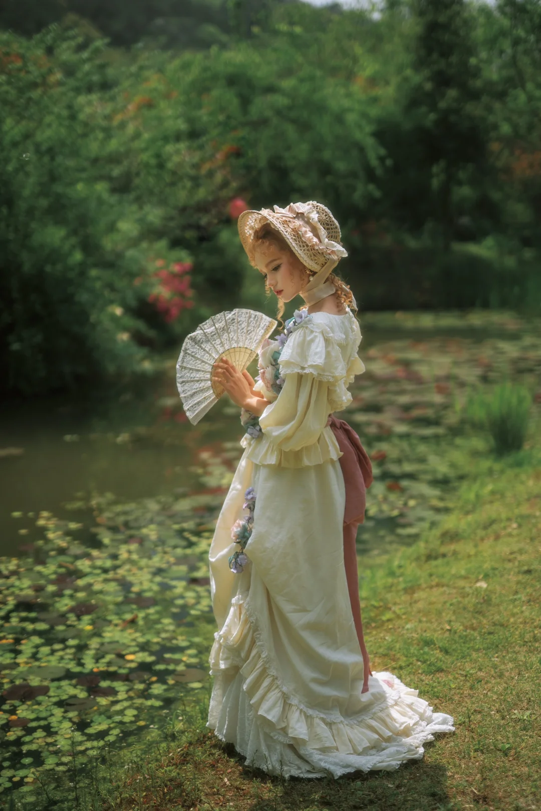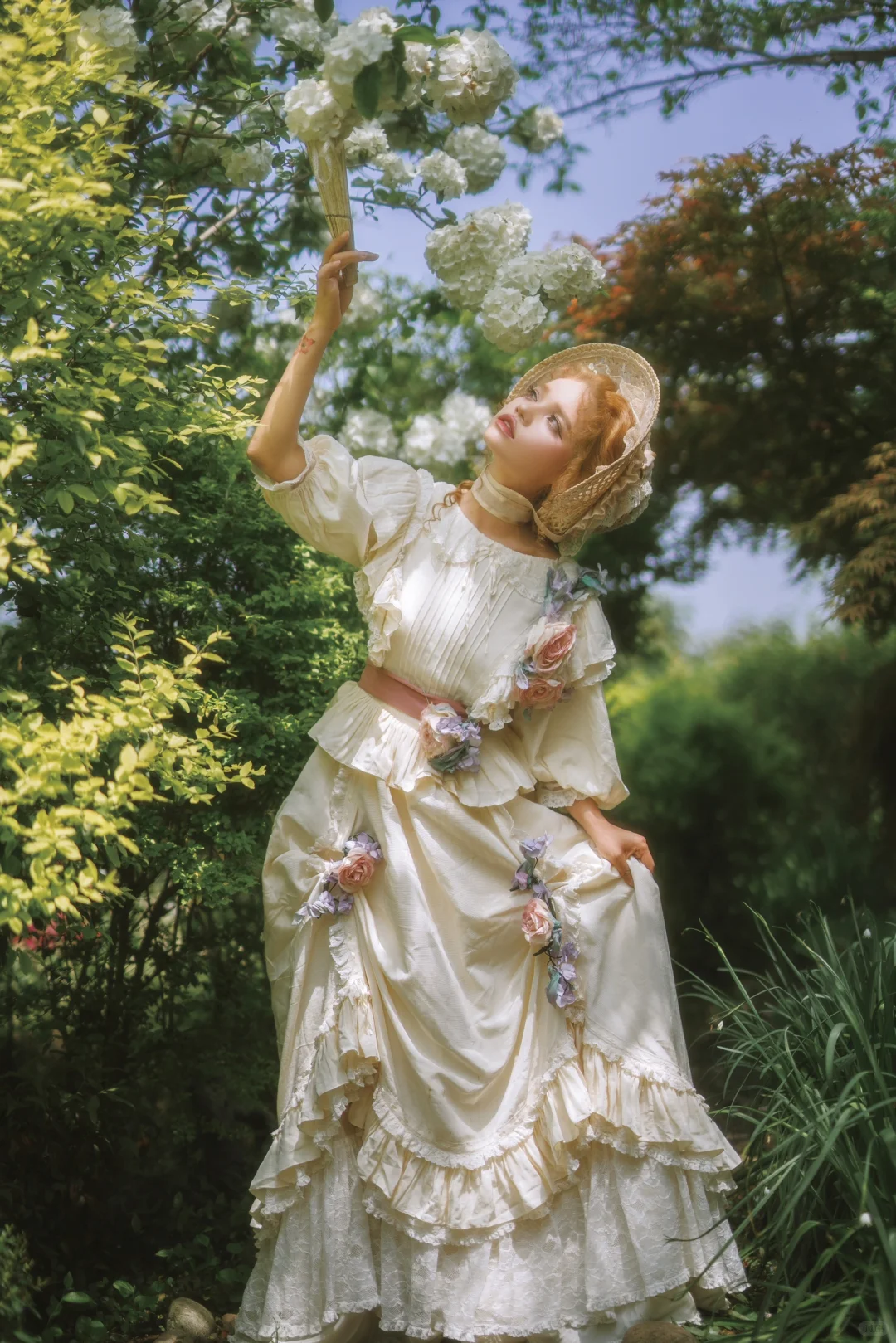 她穿越莎莉花园,踏著雪白的纤足