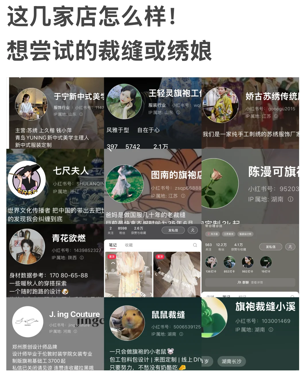 想留一个裁缝(绣娘)推荐合集!!