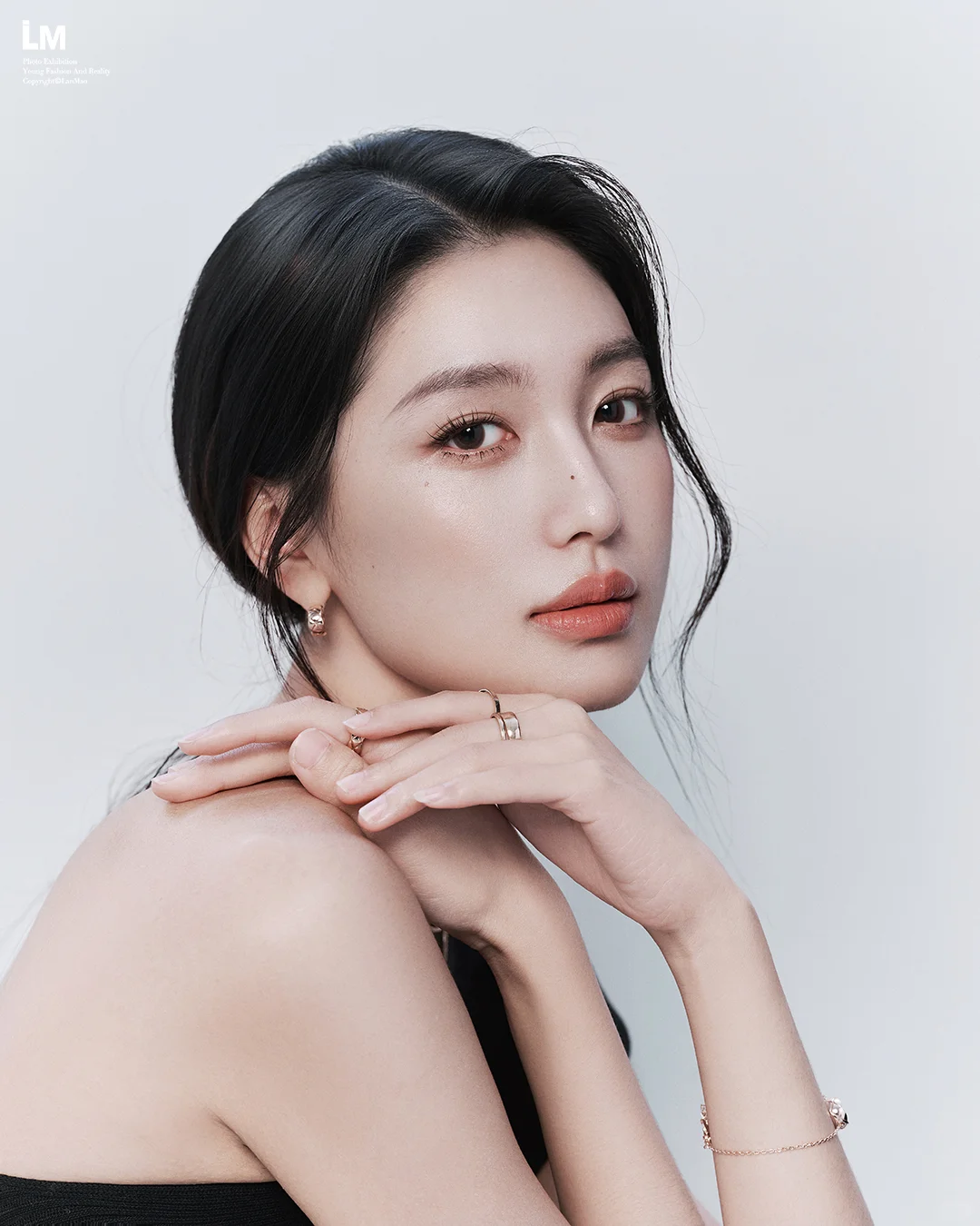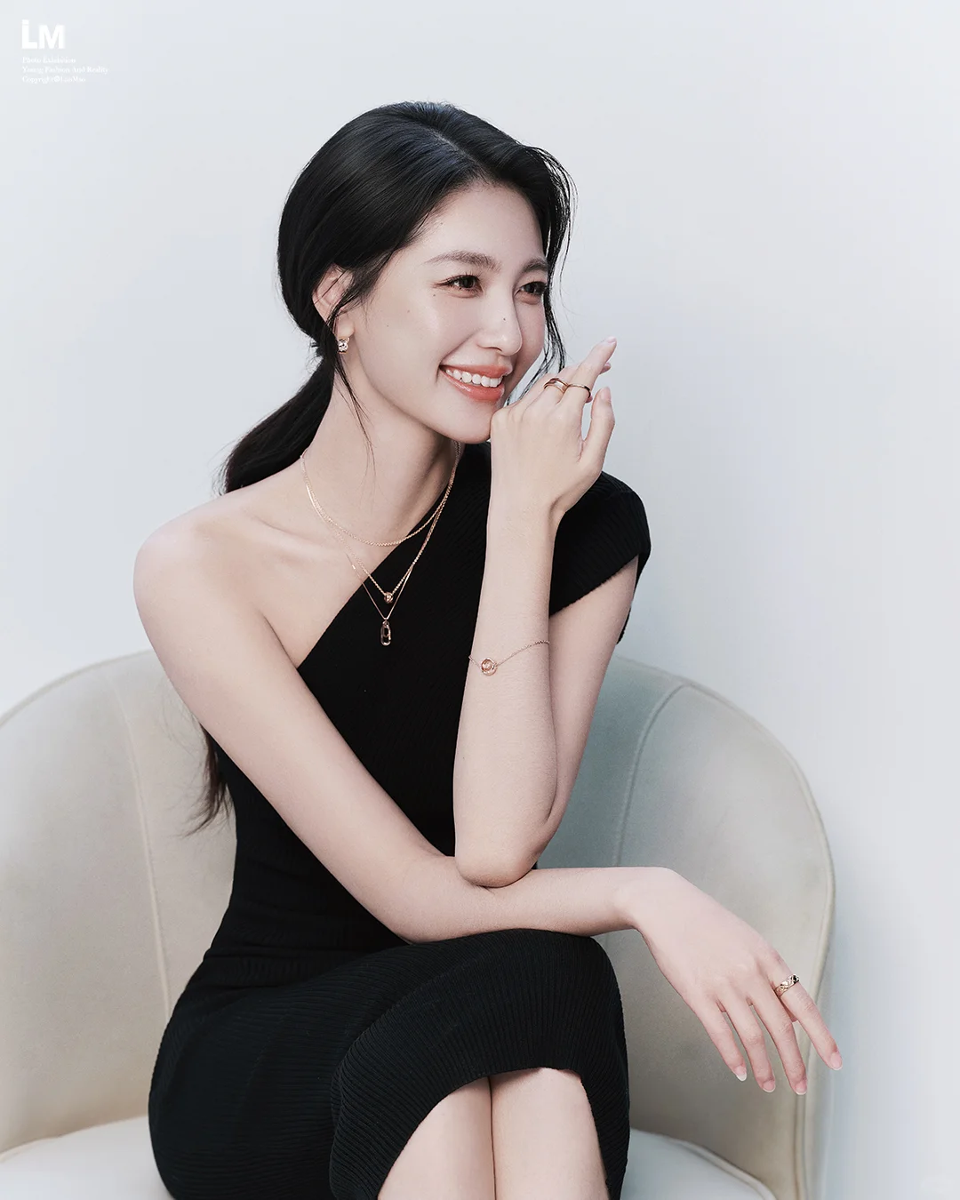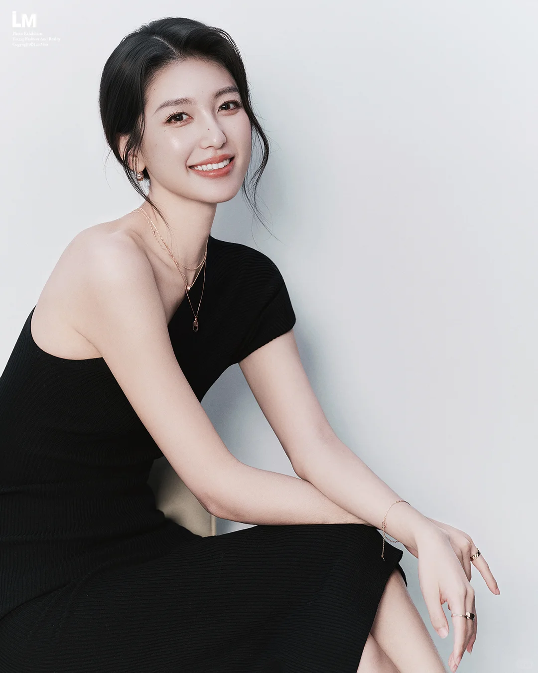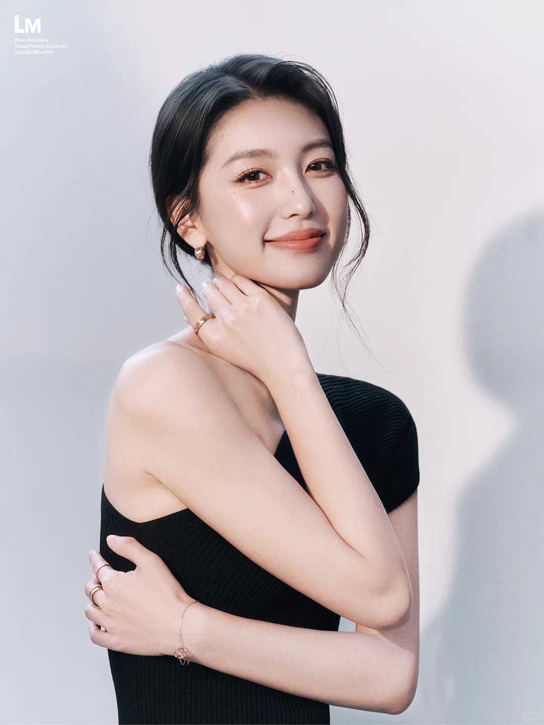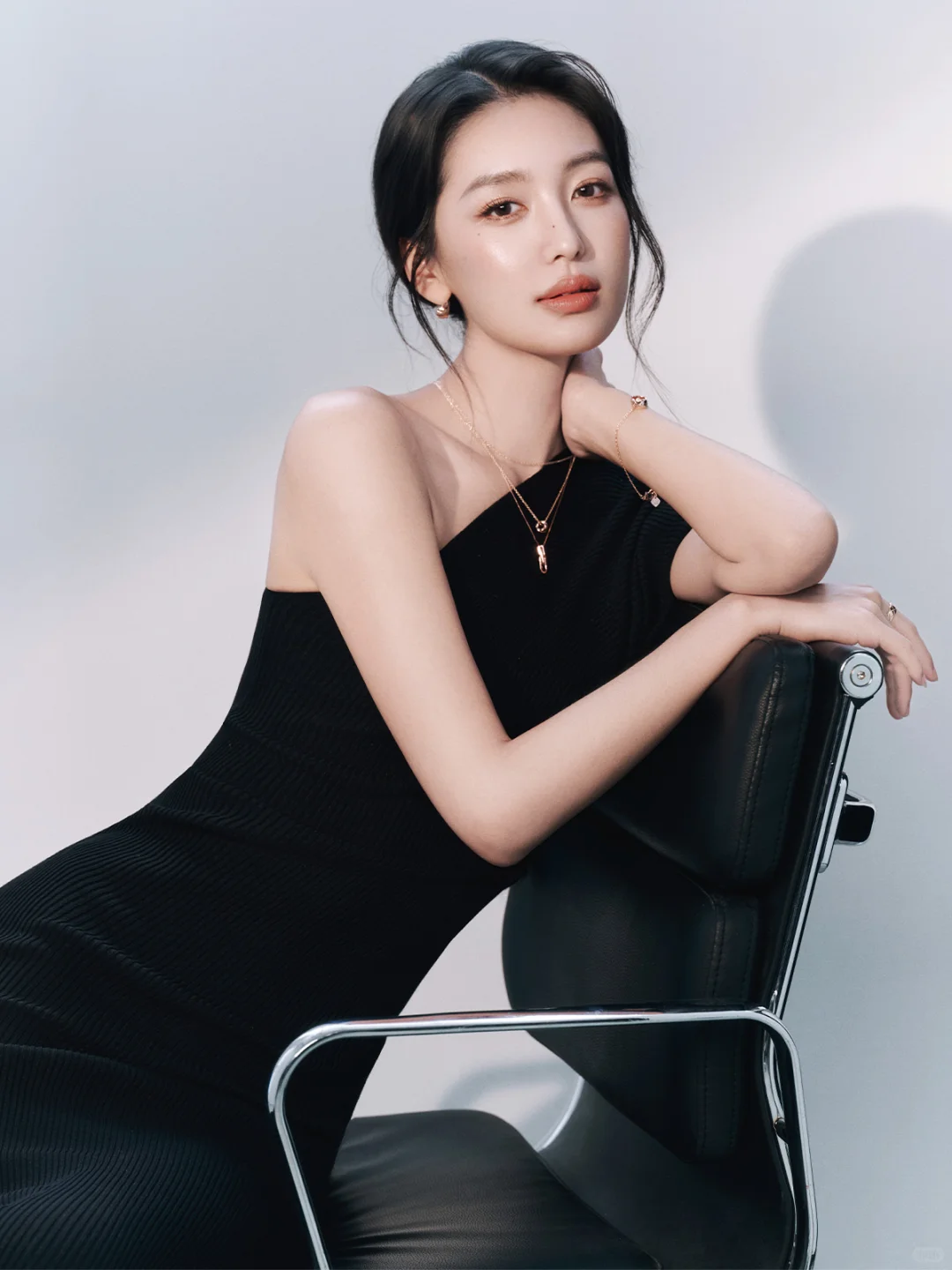 一袭黑色露肩长裙,勾勒曼妙曲线