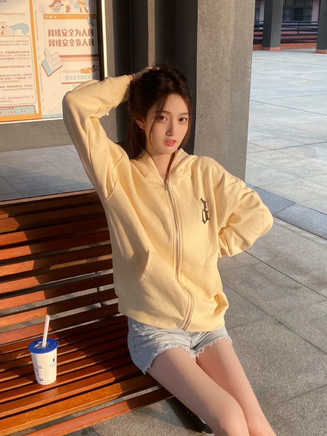下课后和舍友坐在教学区椅子上休息 发现阳光意外的不错