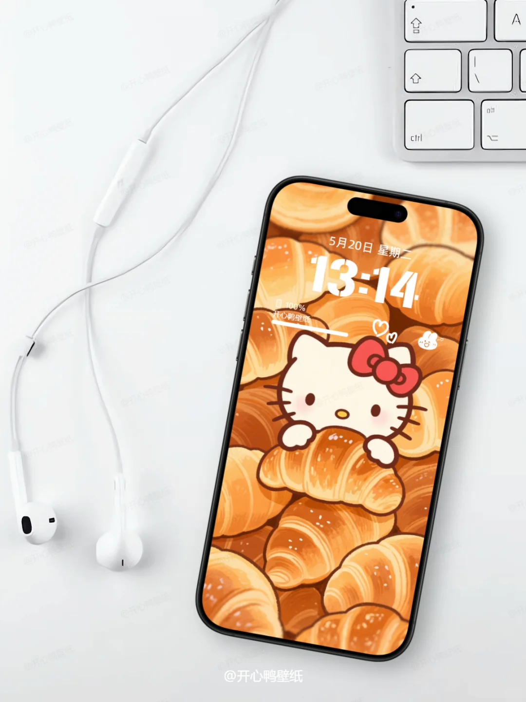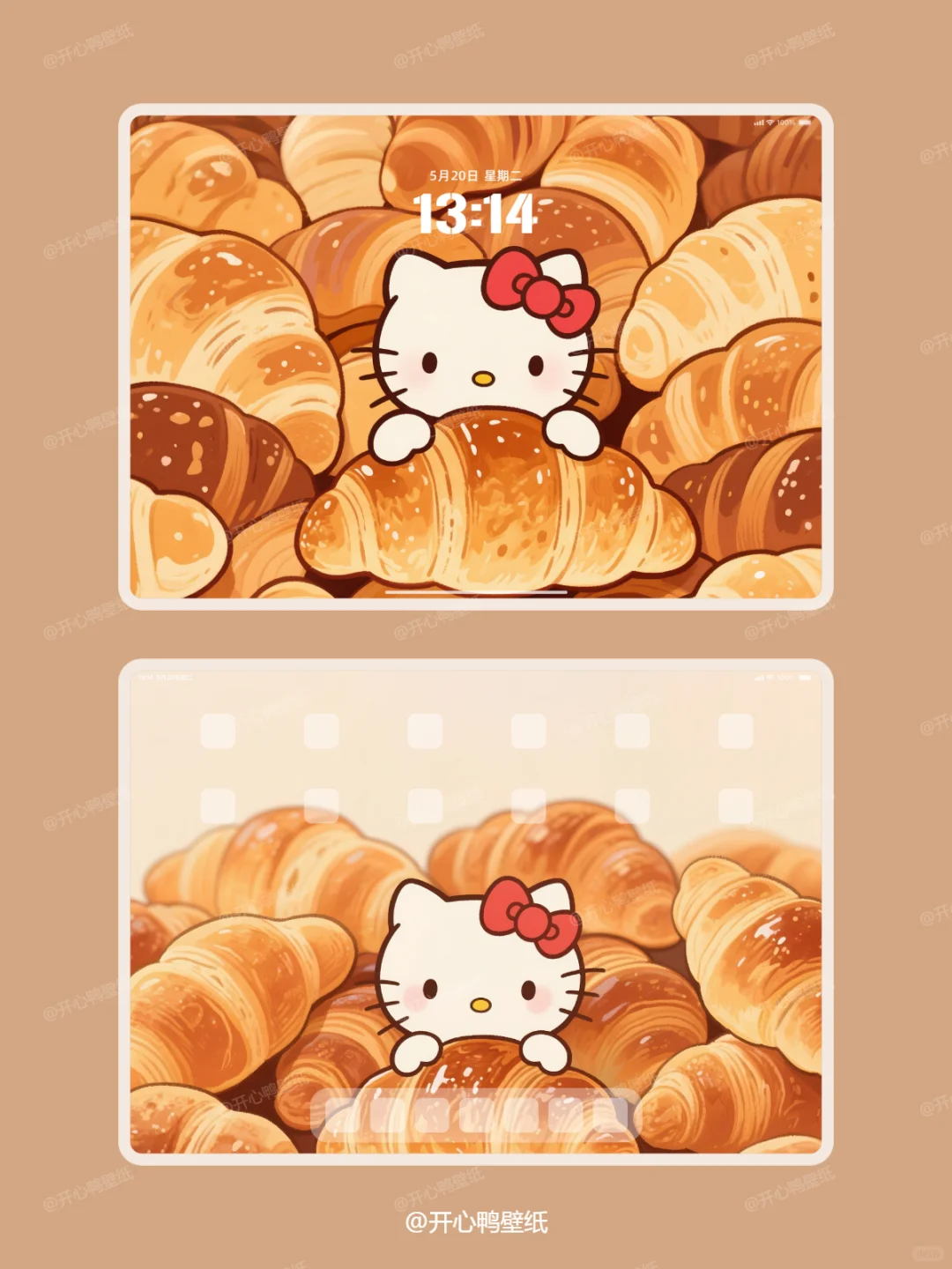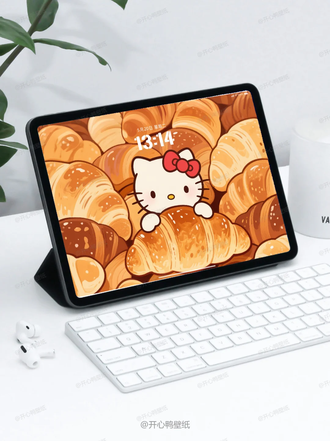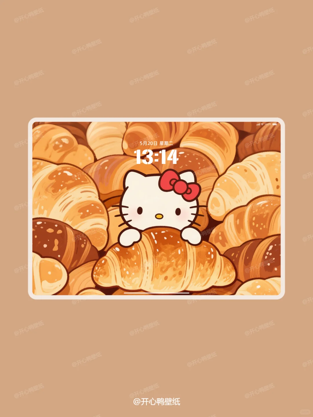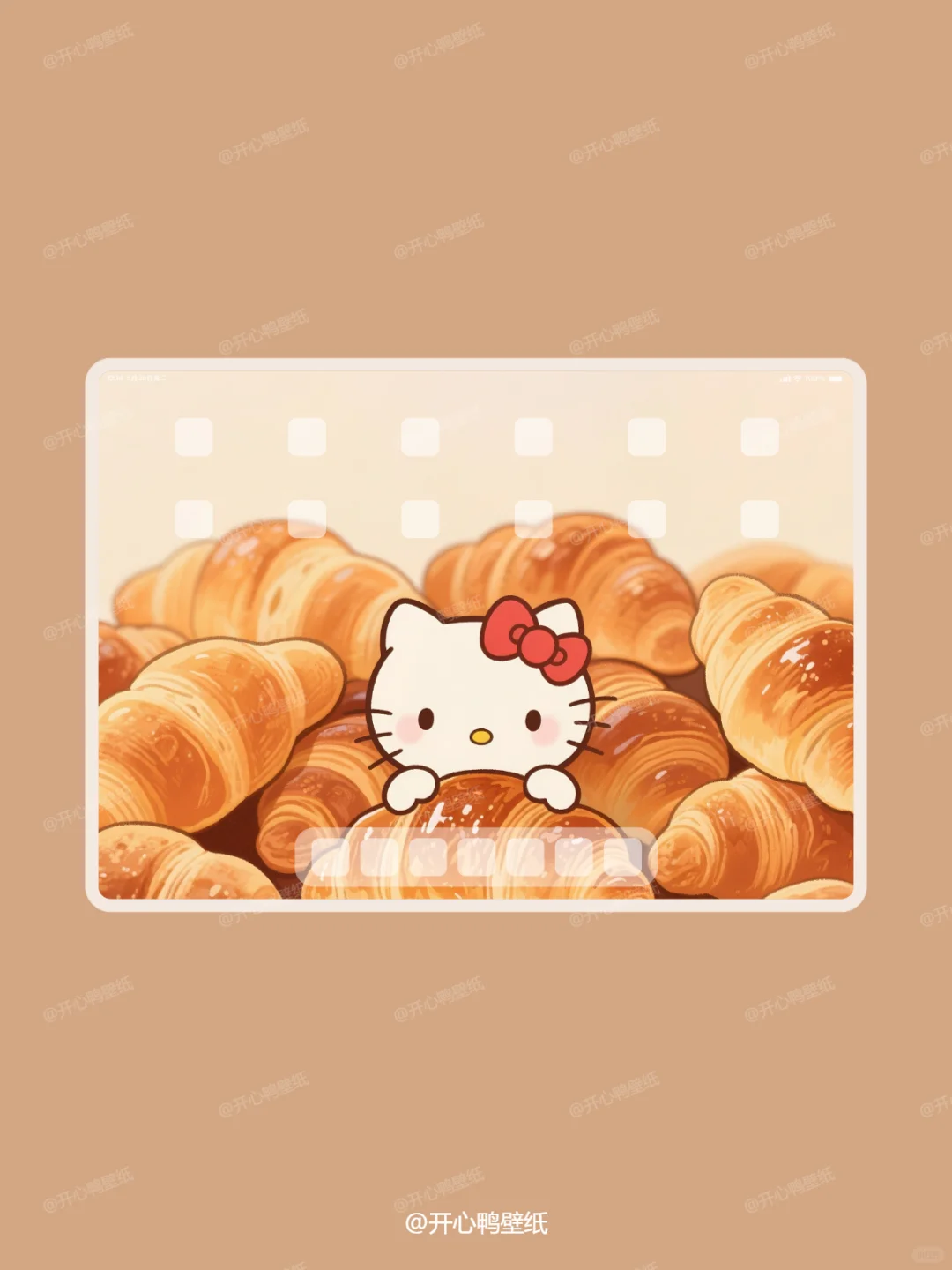 125丨Hello Kitty满屏的牛角包丨平板壁纸