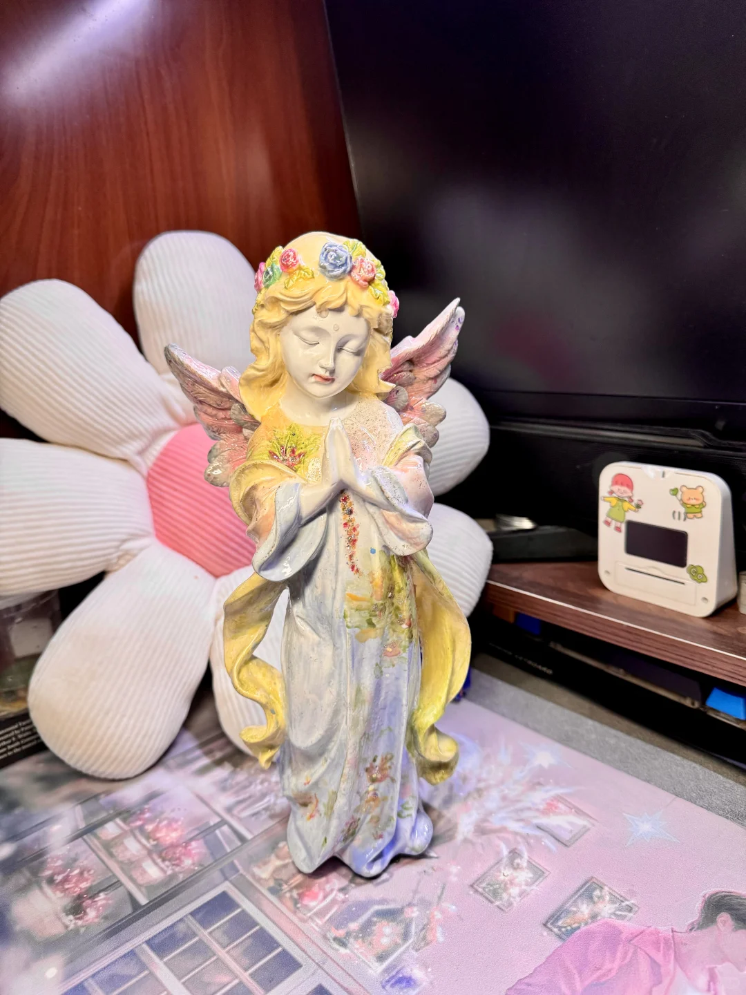 没有丙烯颜料,然后想起家里还有很多免费领的甲油胶!天使石膏娃娃pxx买的有瑕疵还有裂纹,商家免费送我了