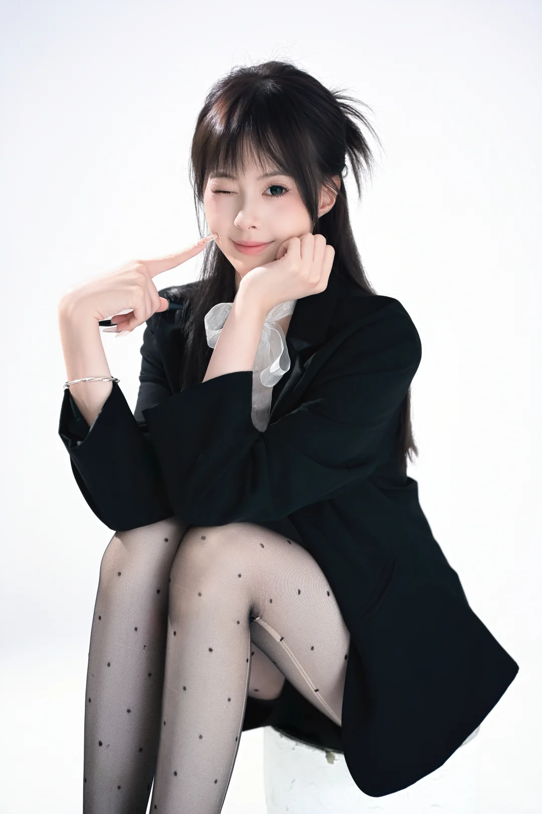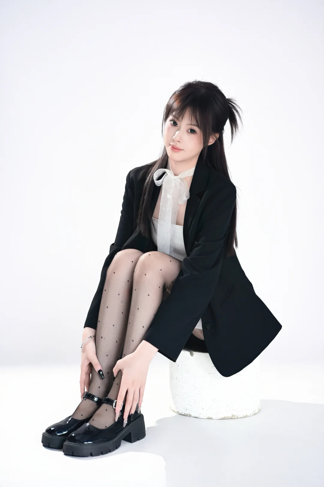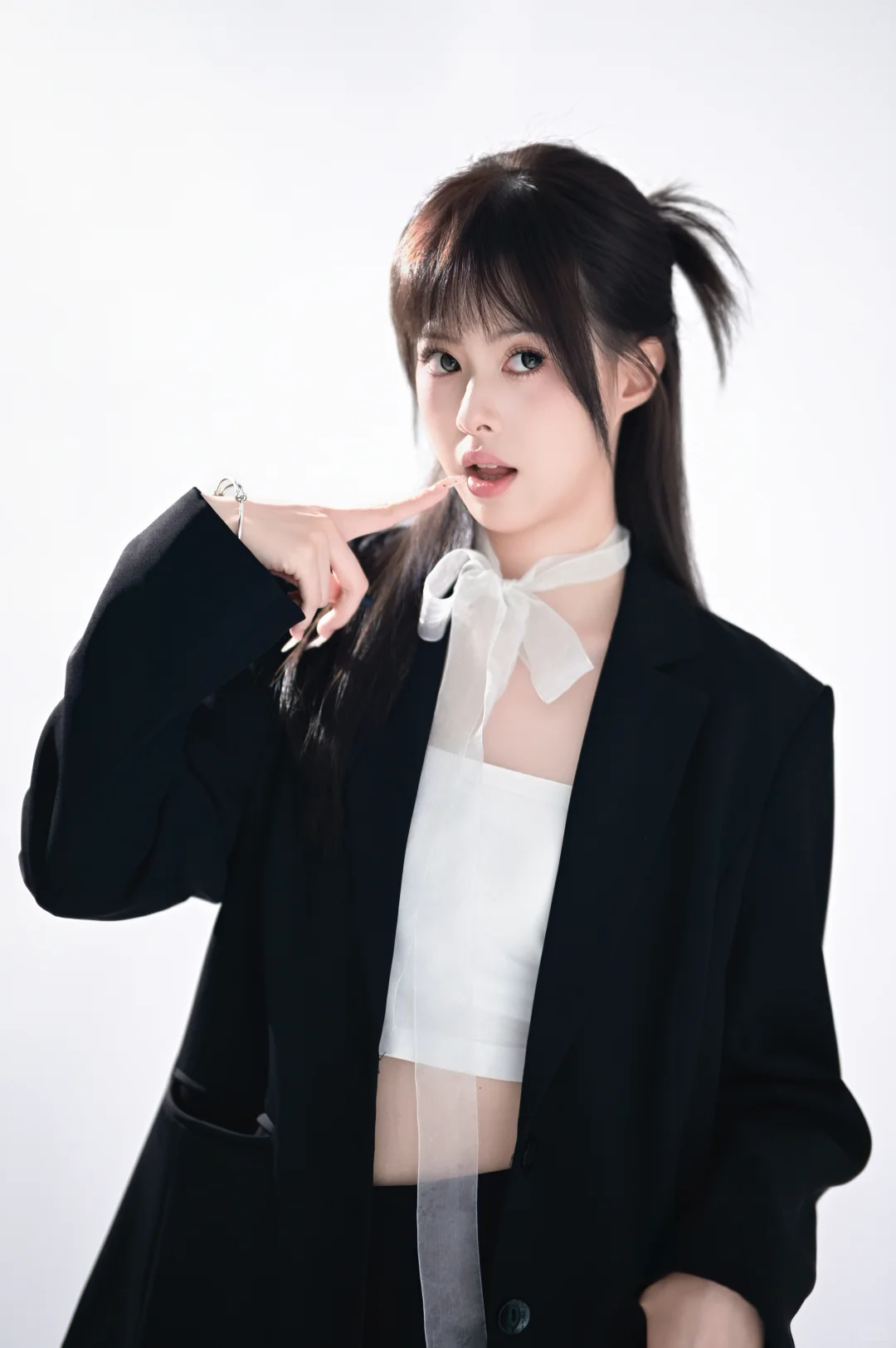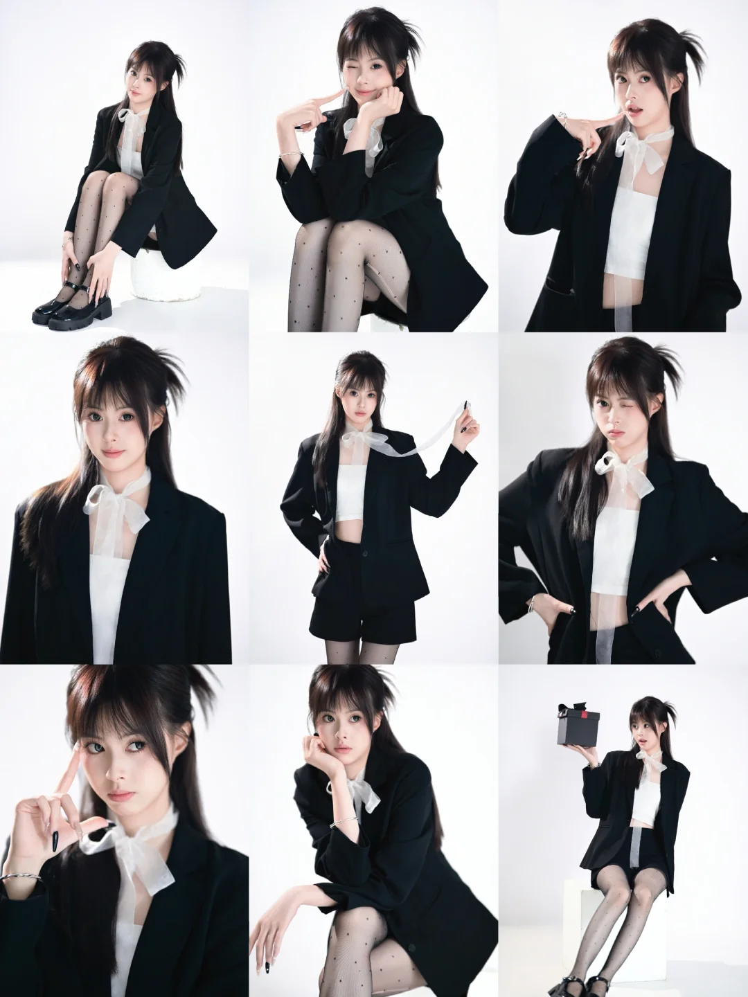 韩系甜酷黑西装也是拍啦!