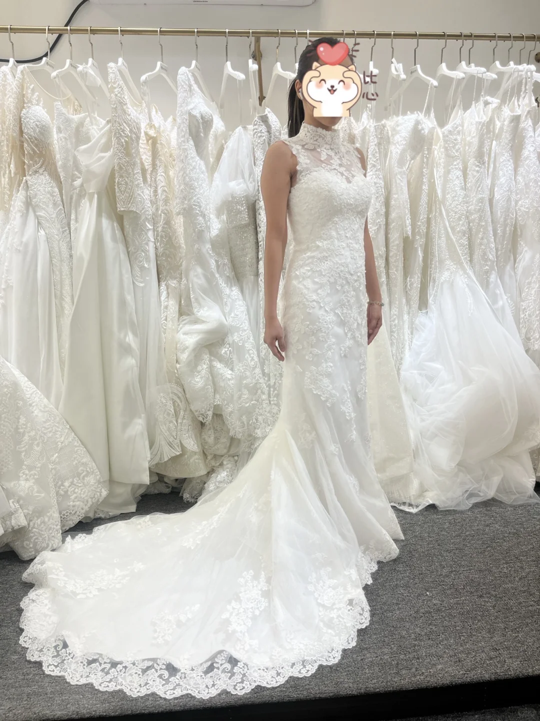 谁能拒绝一件高领蕾丝鱼尾婚纱呢?!