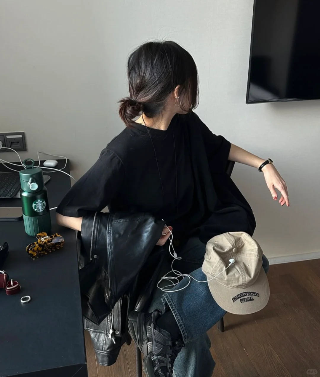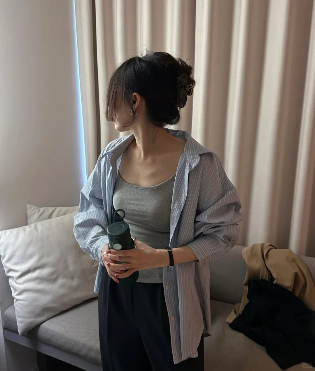1️⃣极简主义:她偏爱简洁的单品,通常选择基础款服饰,如简约的T恤、宽松的裤子、纯色的连衣裙等。颜色上以黑、白、灰、裸色和其他中性色为主,这些基础色调让整体造型看起来非常干净且有质感。