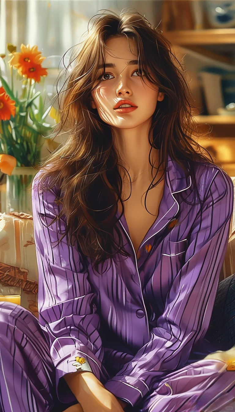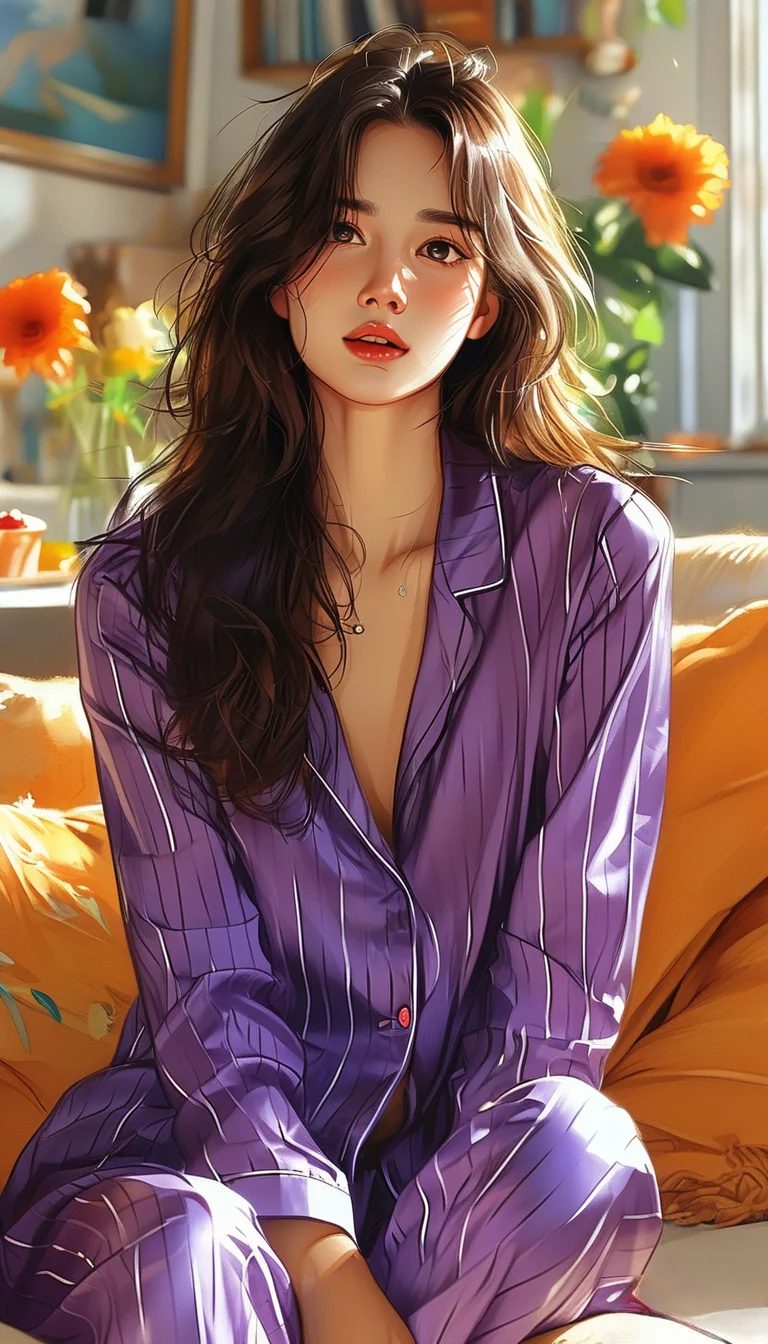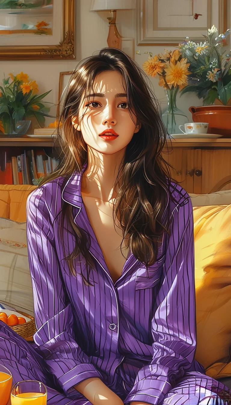 线条插画,慵懒美女