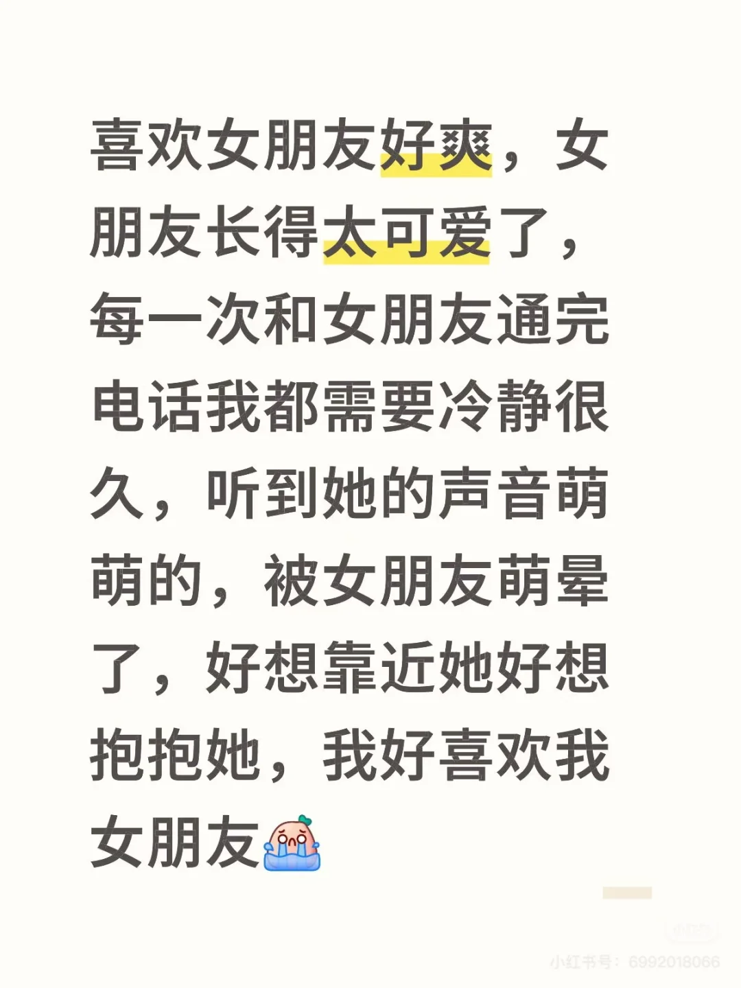 为什么我的女朋友这么可爱 这么萌,每天和她打电话是我最幸福的声音,被甜甜的声音治愈.见面时更是怎么也亲不够,为什么 为什么 为什么