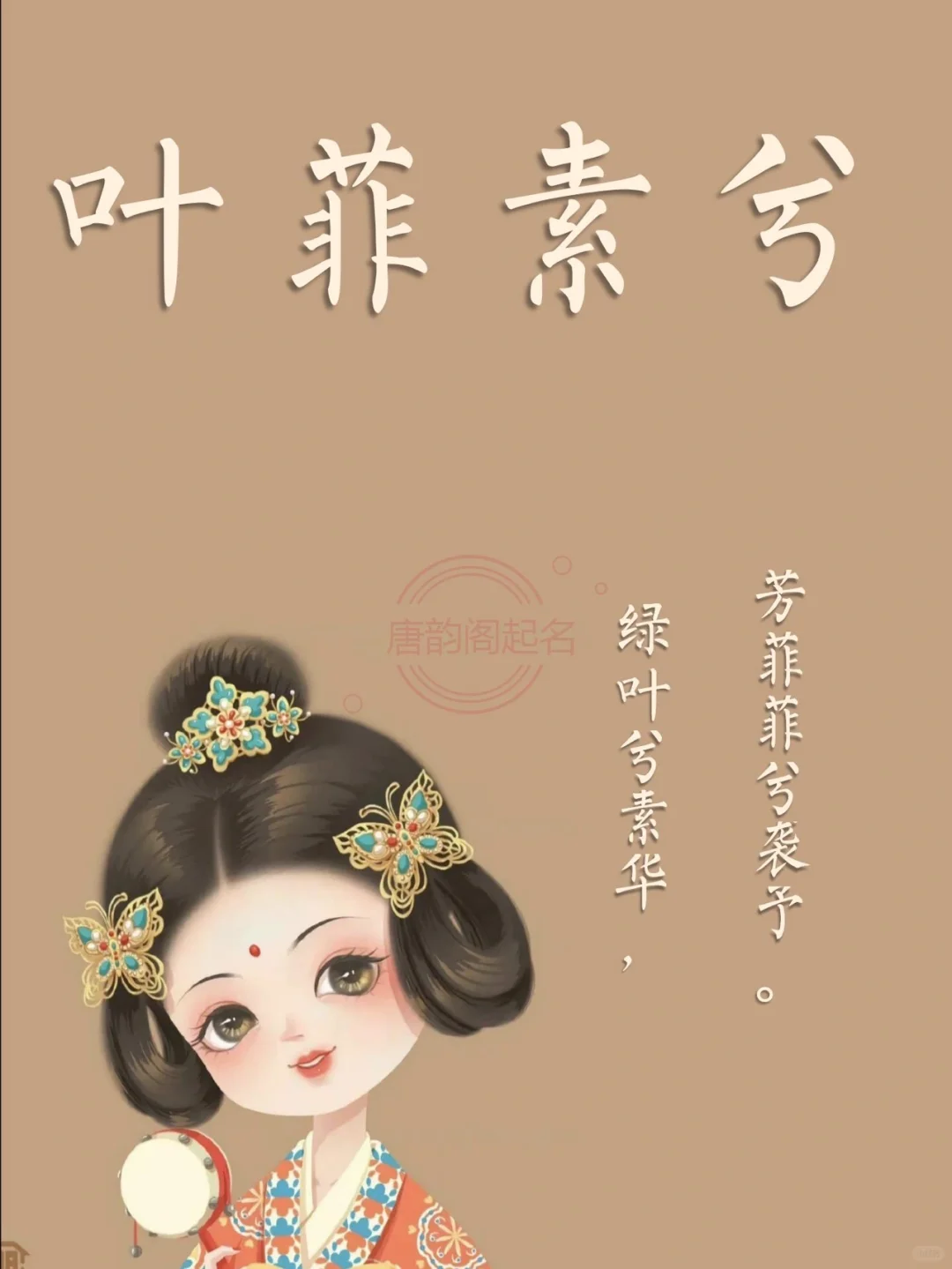 “菲”形容花草美、香味浓,意指容颜出众,充满生命力。搭配叶姓,让名字更多了几分古风意境美。