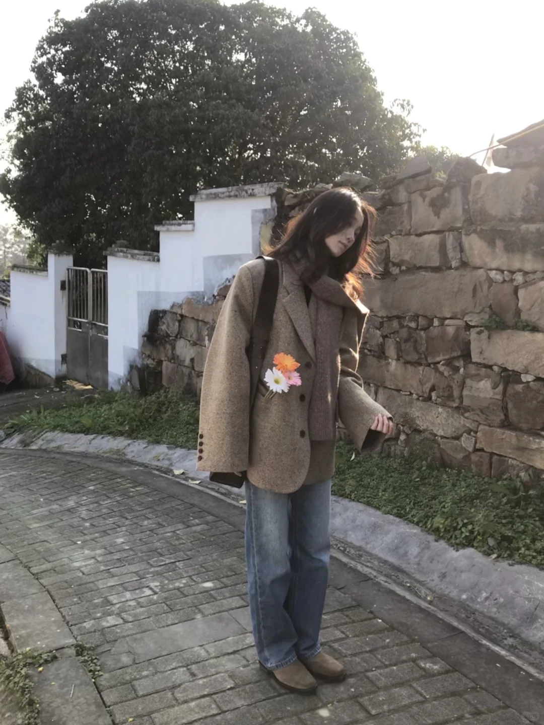穿穿西装配牛仔,感谢阳光给我的冬日氛围