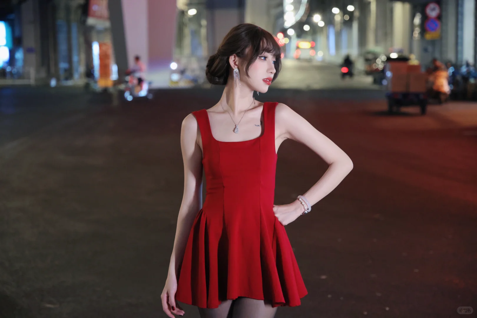 夜拍红裙