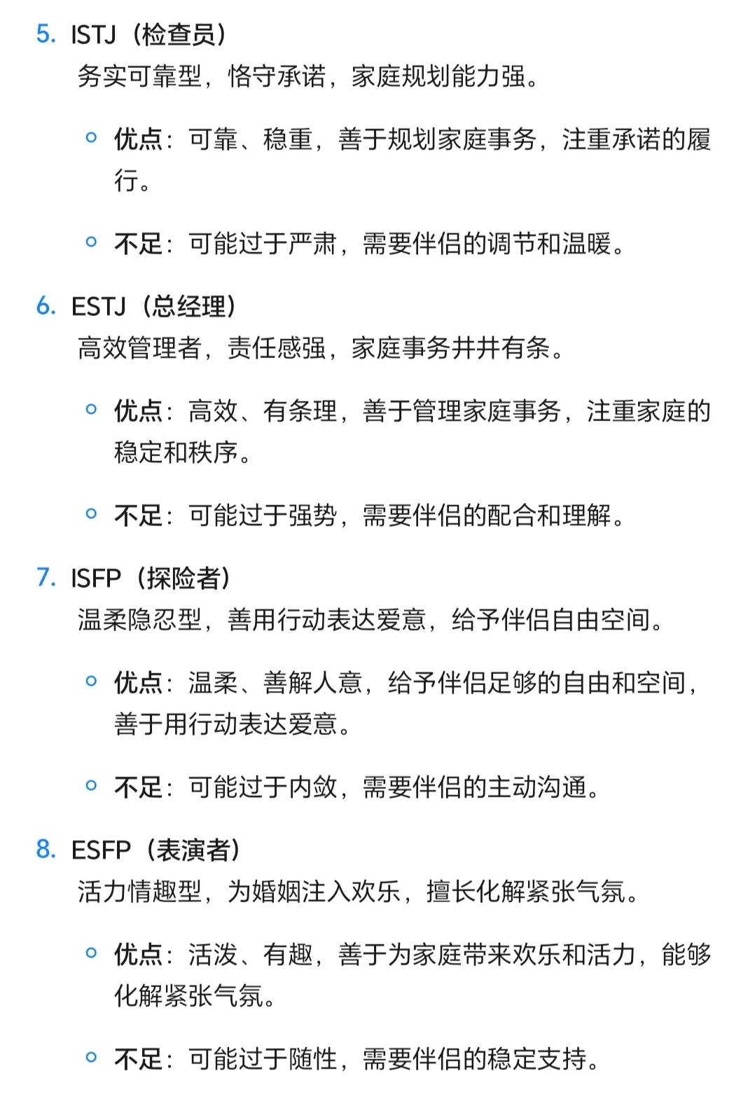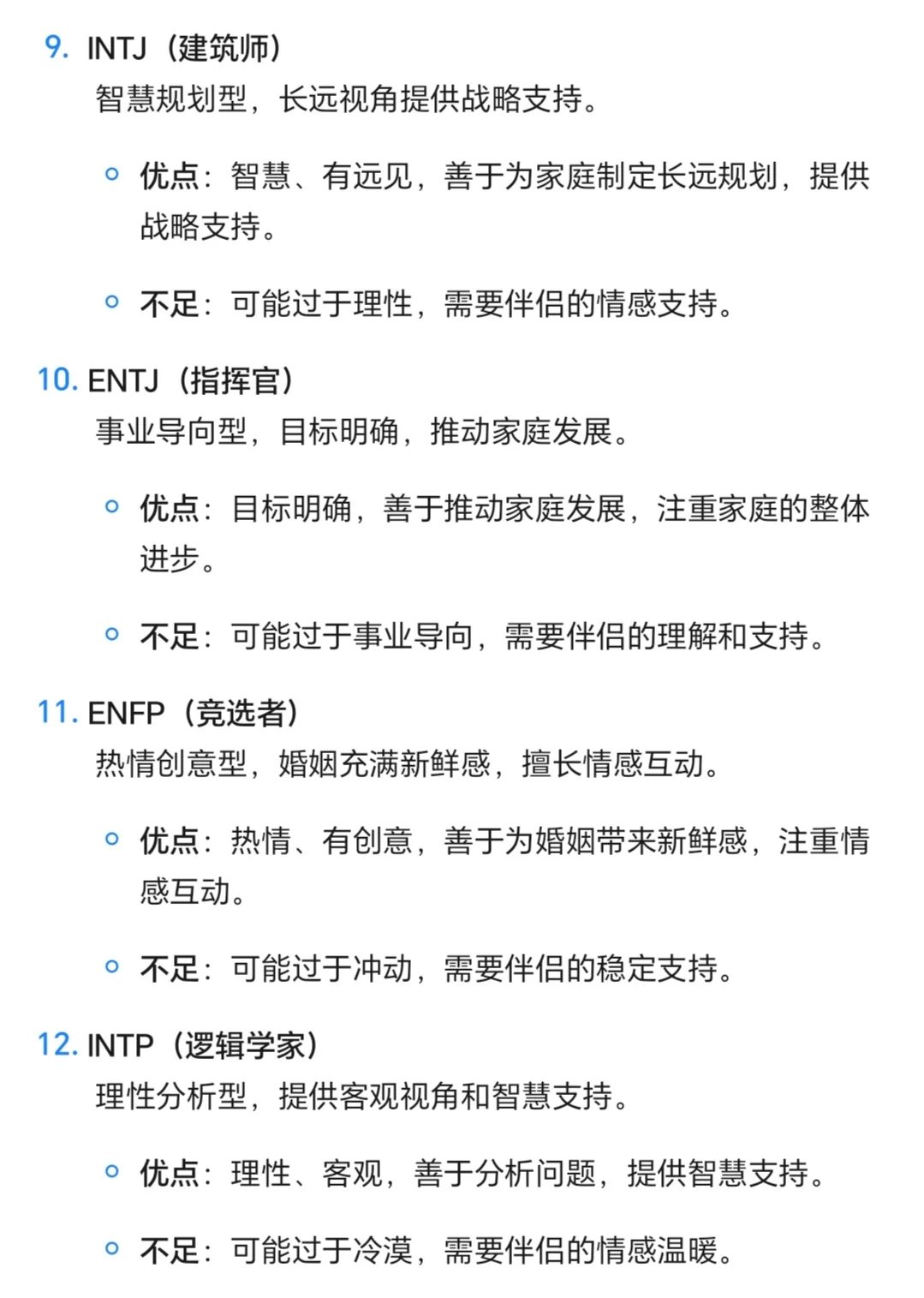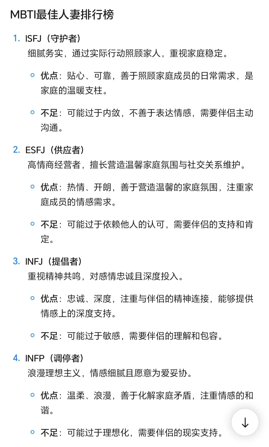 MBTI最佳人妻排行榜