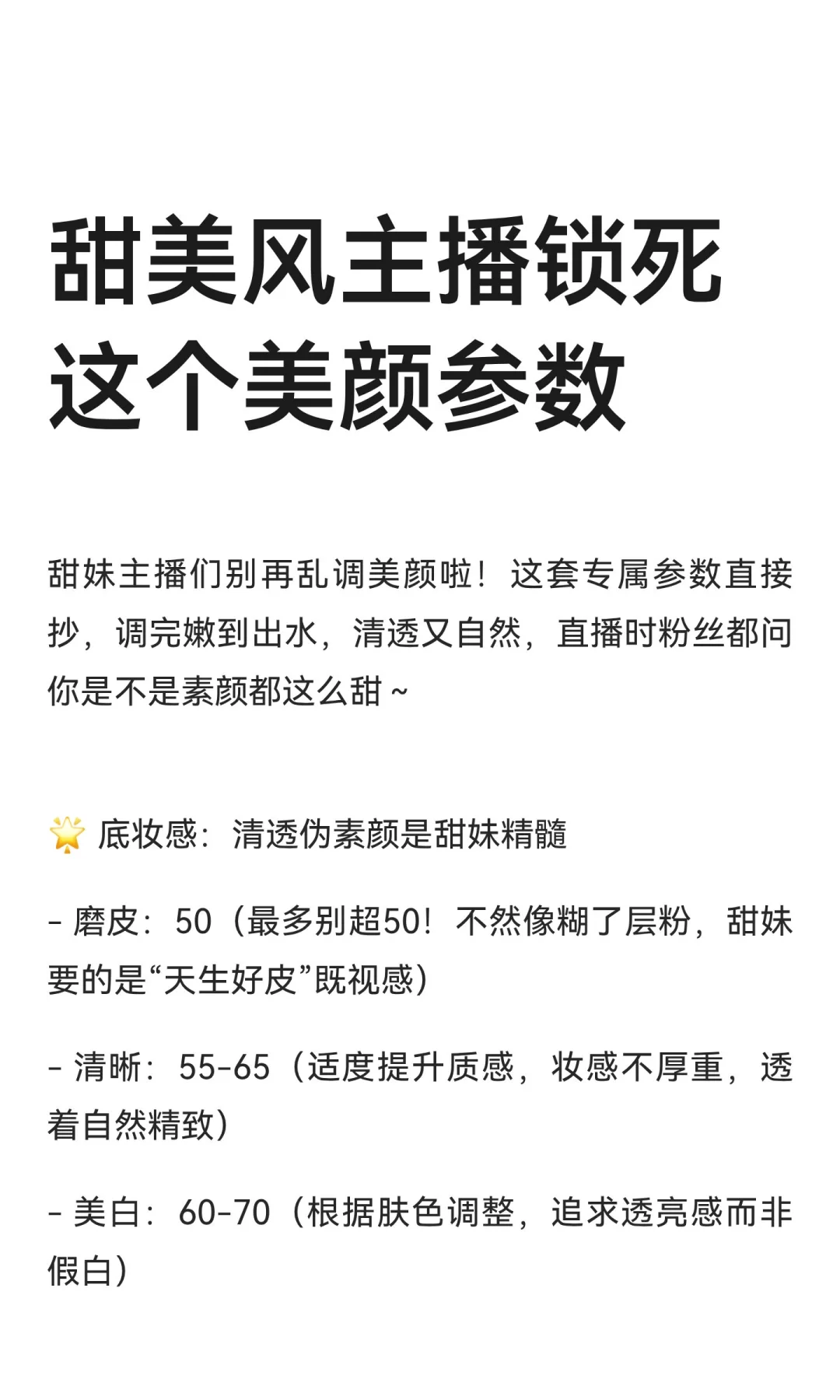 甜妹主播们调美颜参数,清透伪素颜,自然嫩到出水