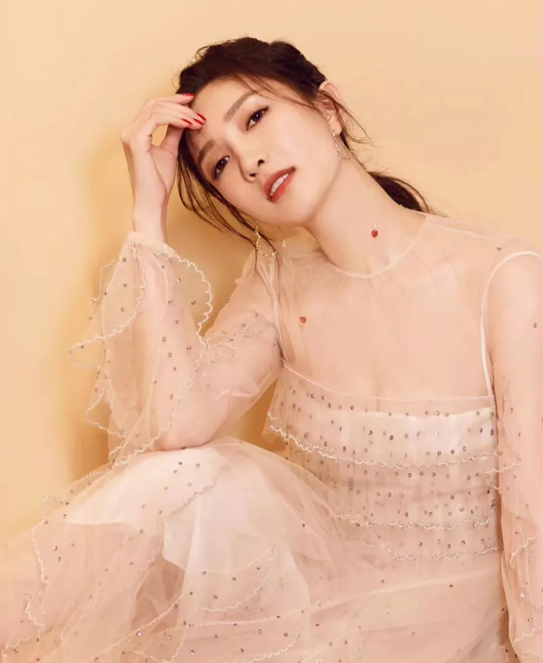 江疏影可谓是万种风情万般美,她体态婀娜,举止优雅,精致的五官衬托出她干净无瑕的无邪气质,一双蛾眉微微上挑,柔美中多了一份执著;修长的睫毛宛如蝉翼般伏在杏眼上,微微颤动着,乌亮的大眼流光溢彩。