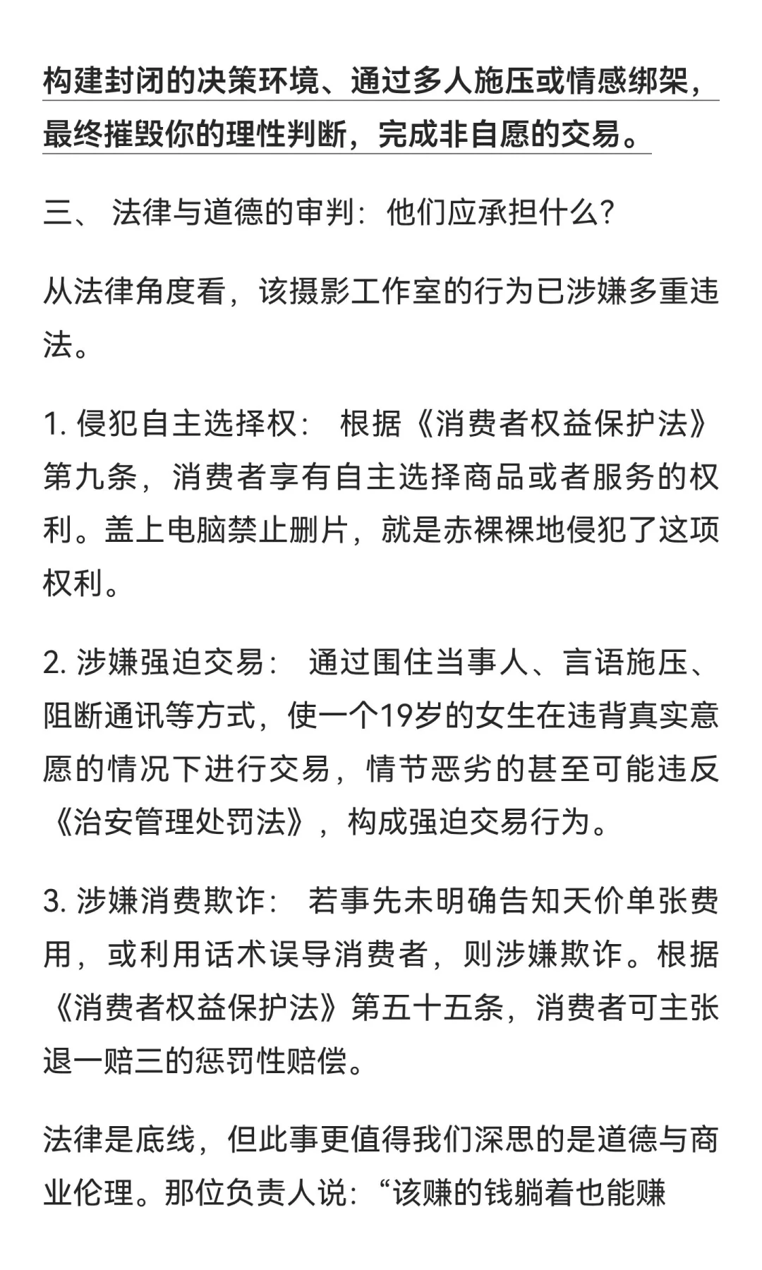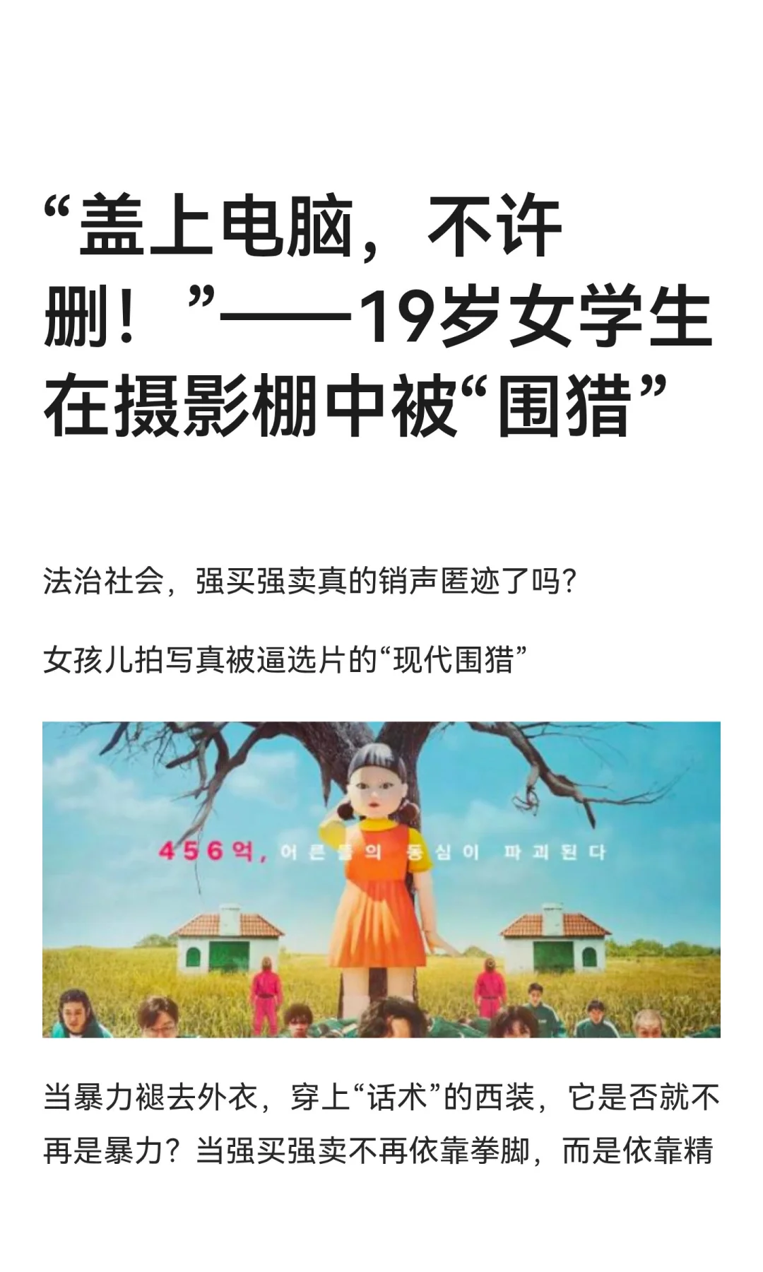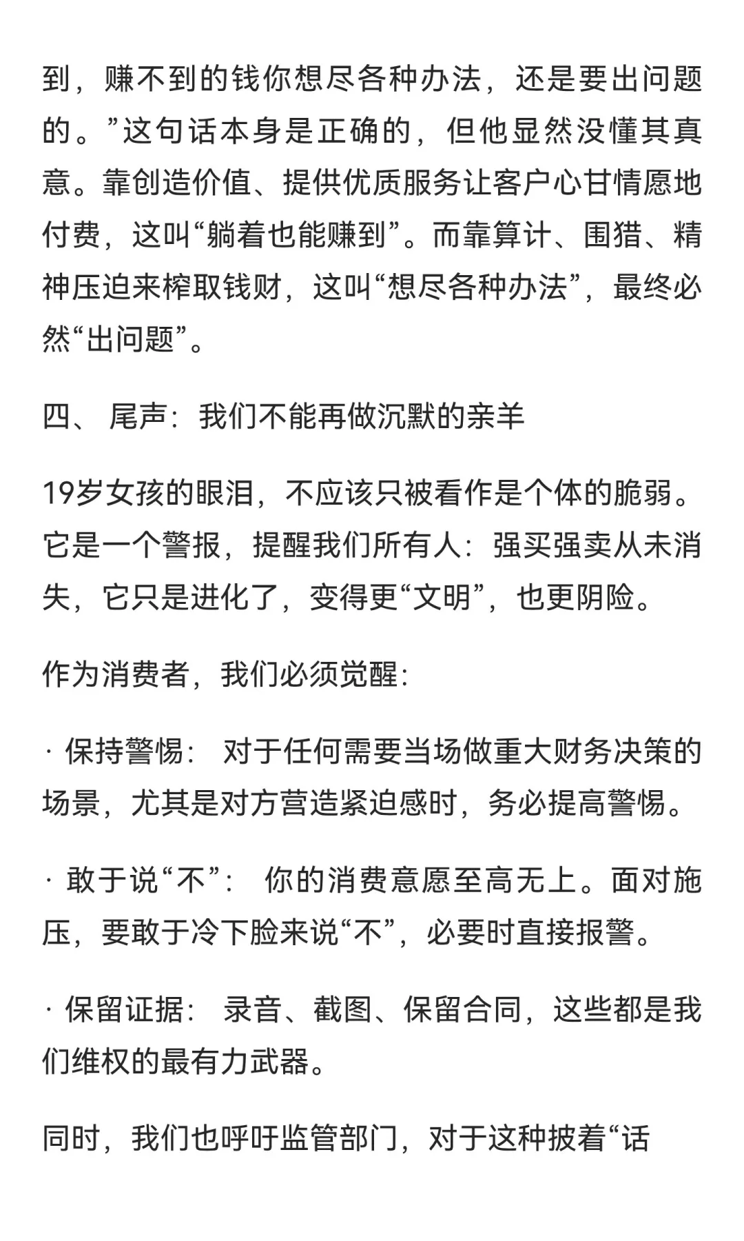 强买强卖在“话术”包装下仍存在,通过精神施压和信息不对称,商家剥夺消费者选择权,甚至违法。消费者需保持警惕,敢于说“不”,保留证据,同时呼吁加强监管,维护市场公平。