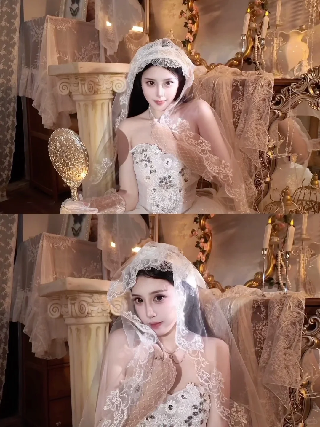 1️⃣拥有一块透明度高一点的头纱,还有手套