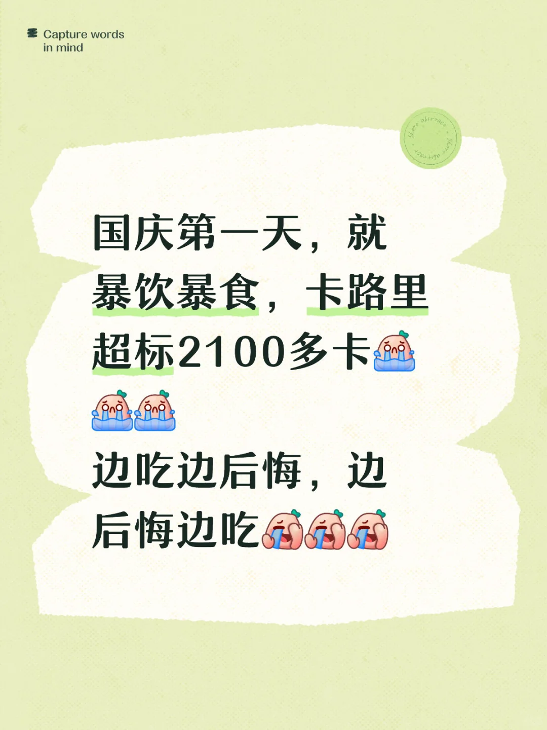 国庆第一天,就暴饮暴食,卡路里超标2100多卡