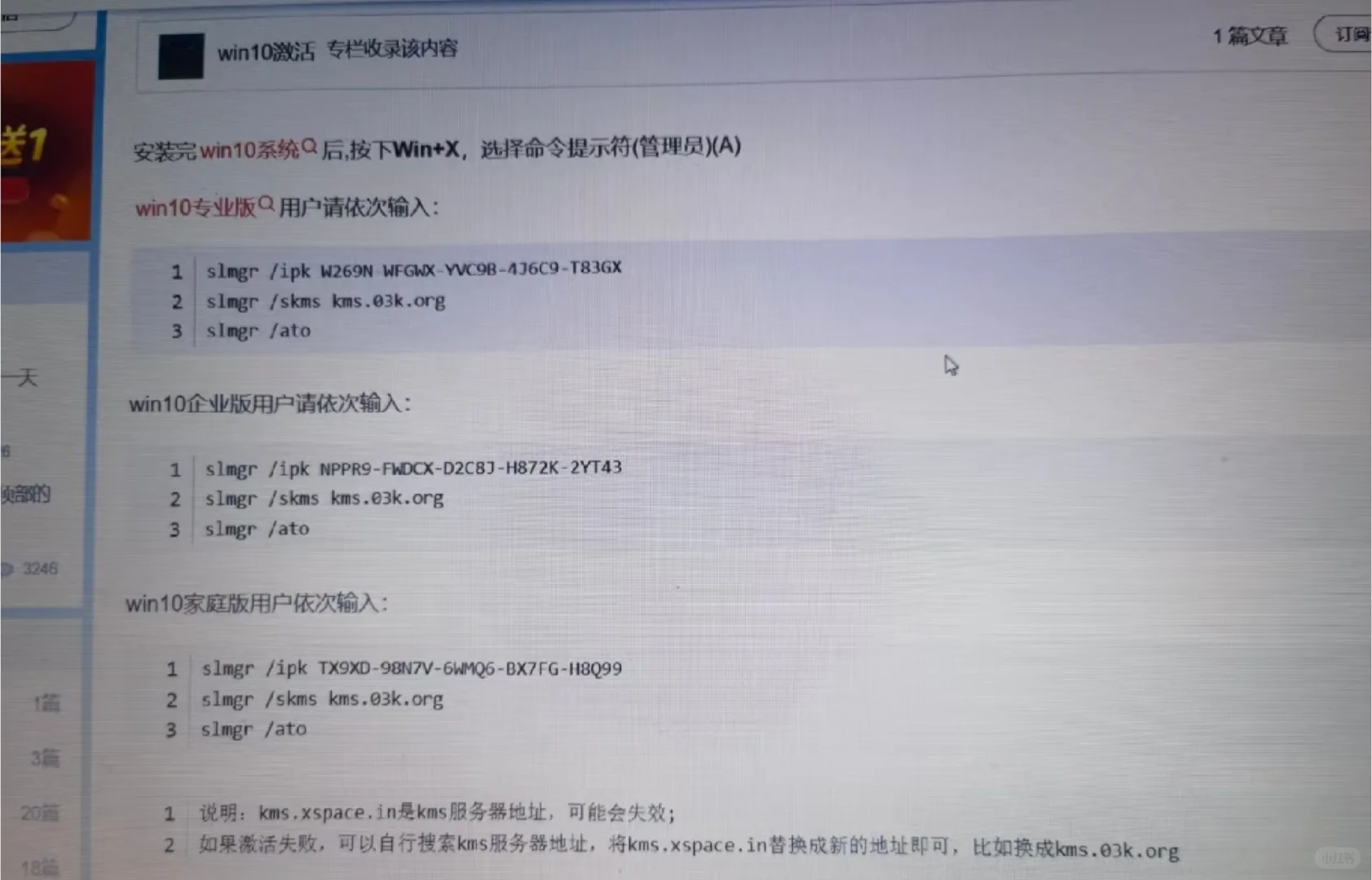 KMS若遇到问题 请另外搜索方法解决度娘很多