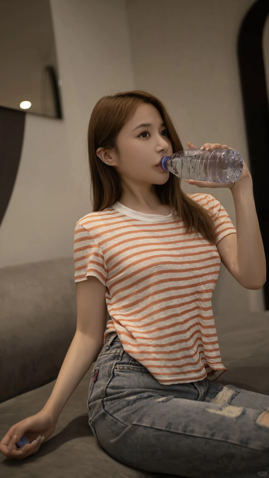 鱼子酱fish(橙色条纹t恤and蓝色牛仔裤)