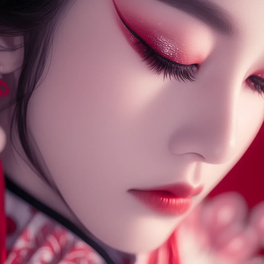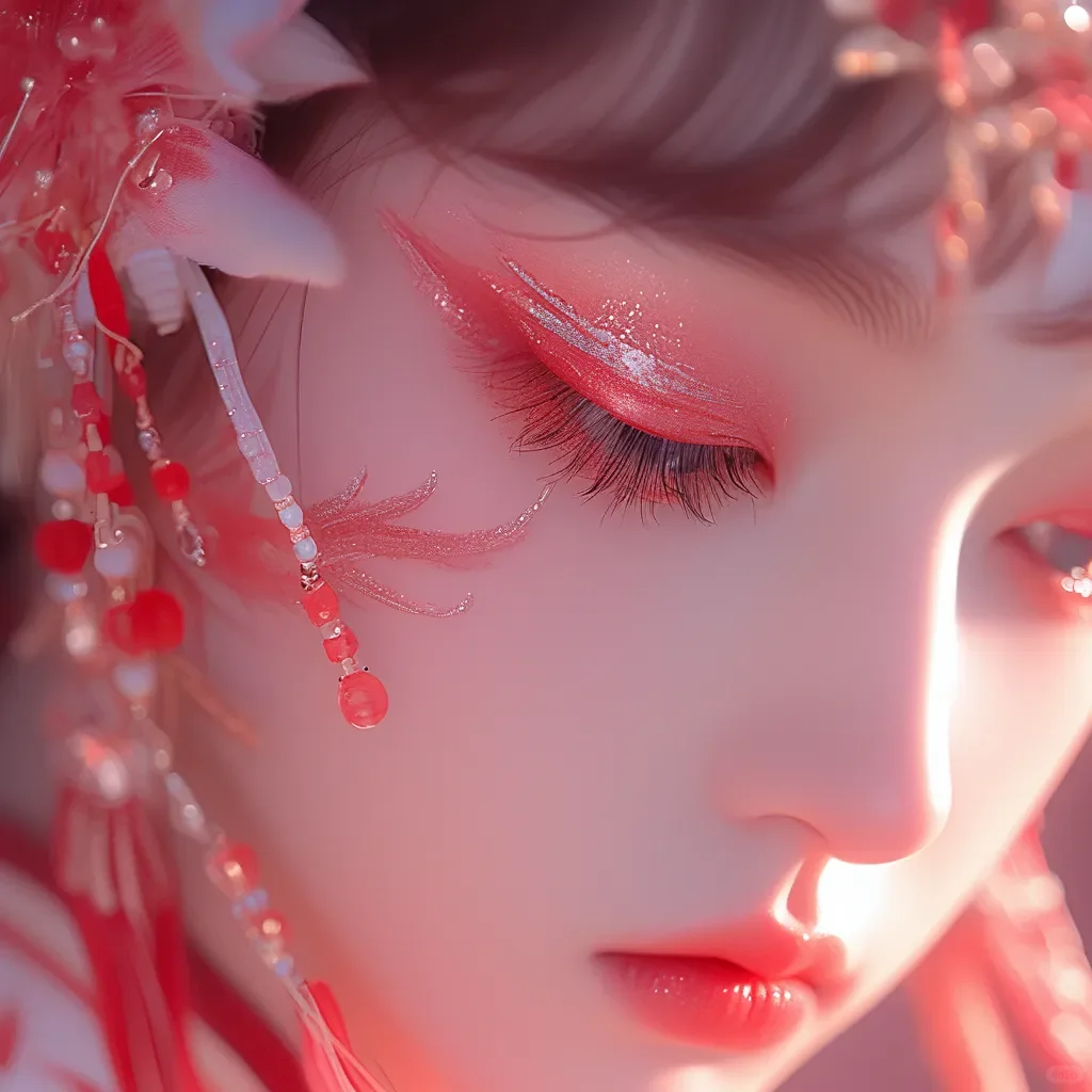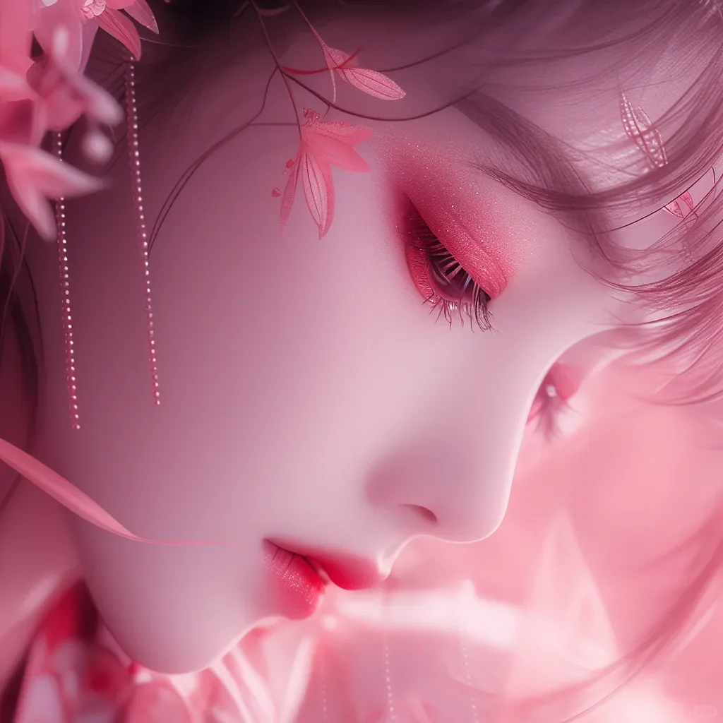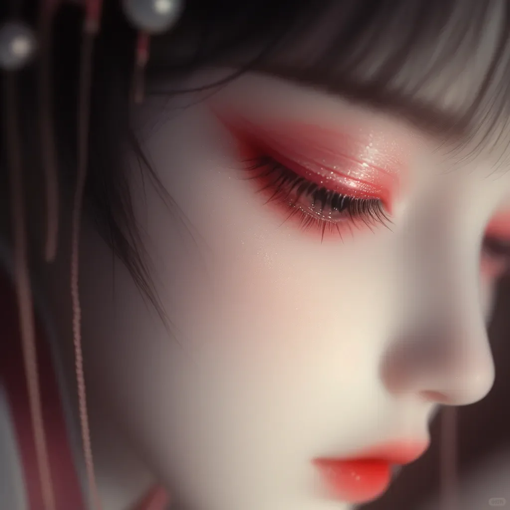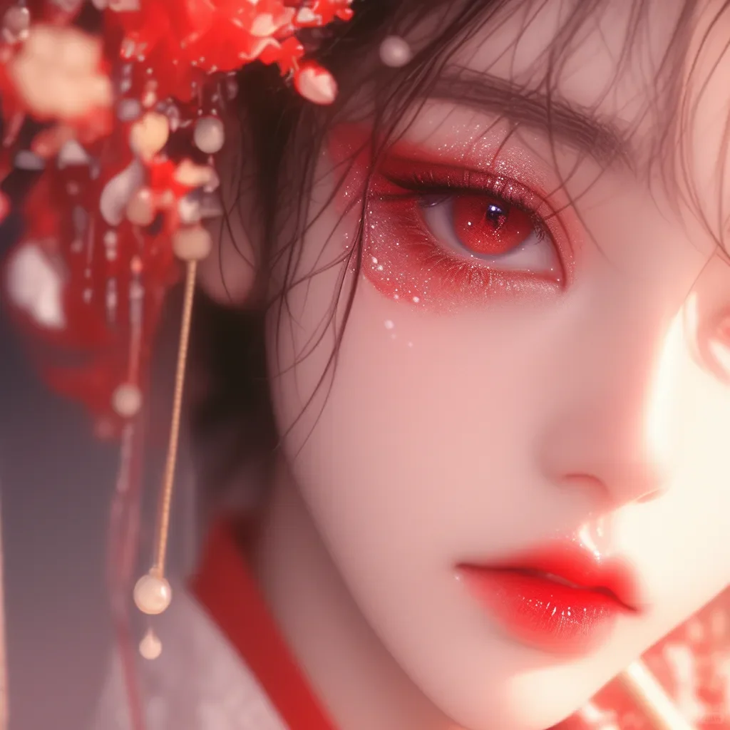 胭脂泪,相留醉。芙蓉如面柳如眉。海棠桃红晕宿雨。杏红衫子薄罗裳。