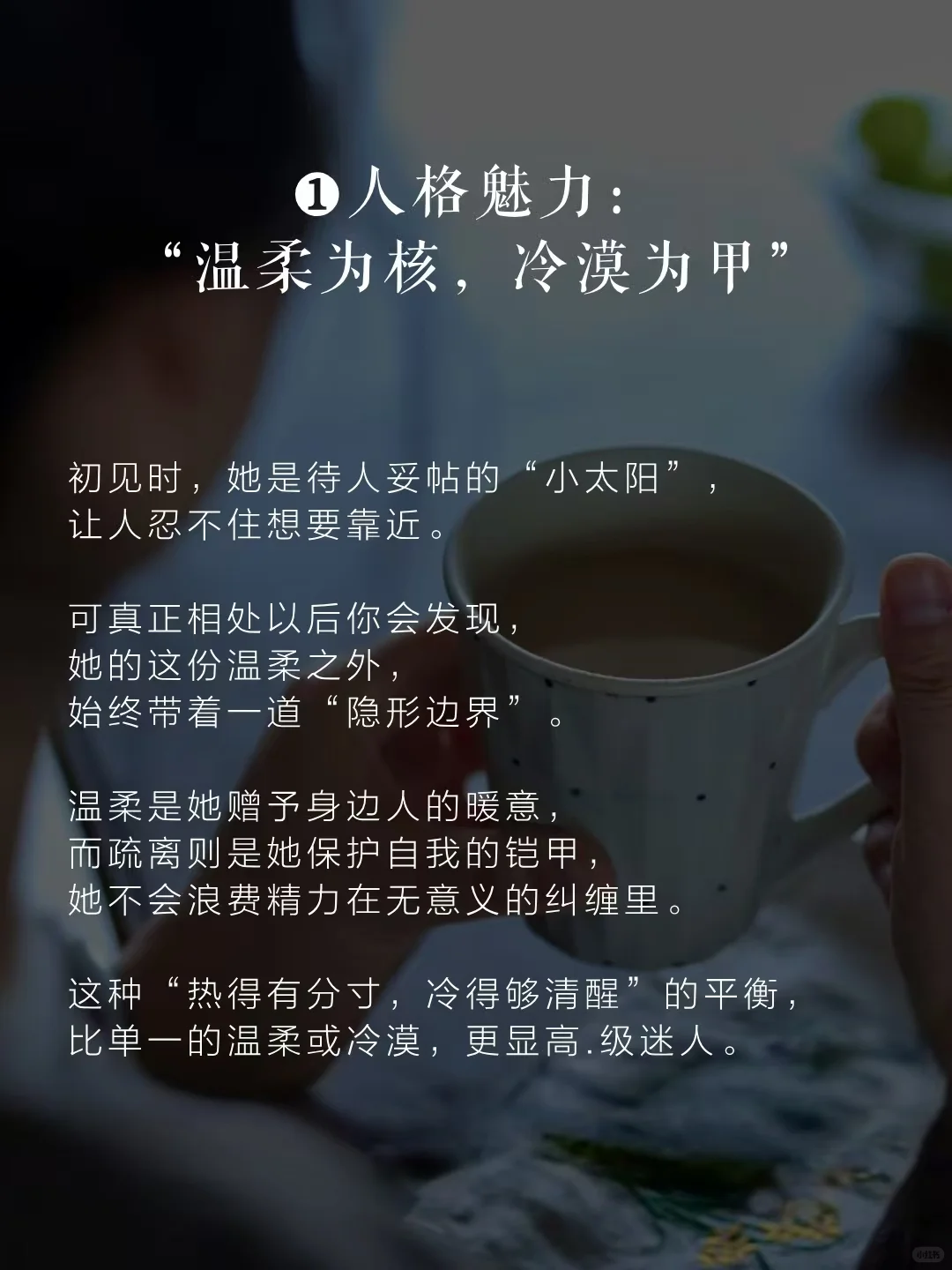 ❶人格魅力:“温柔为核,冷漠为甲”