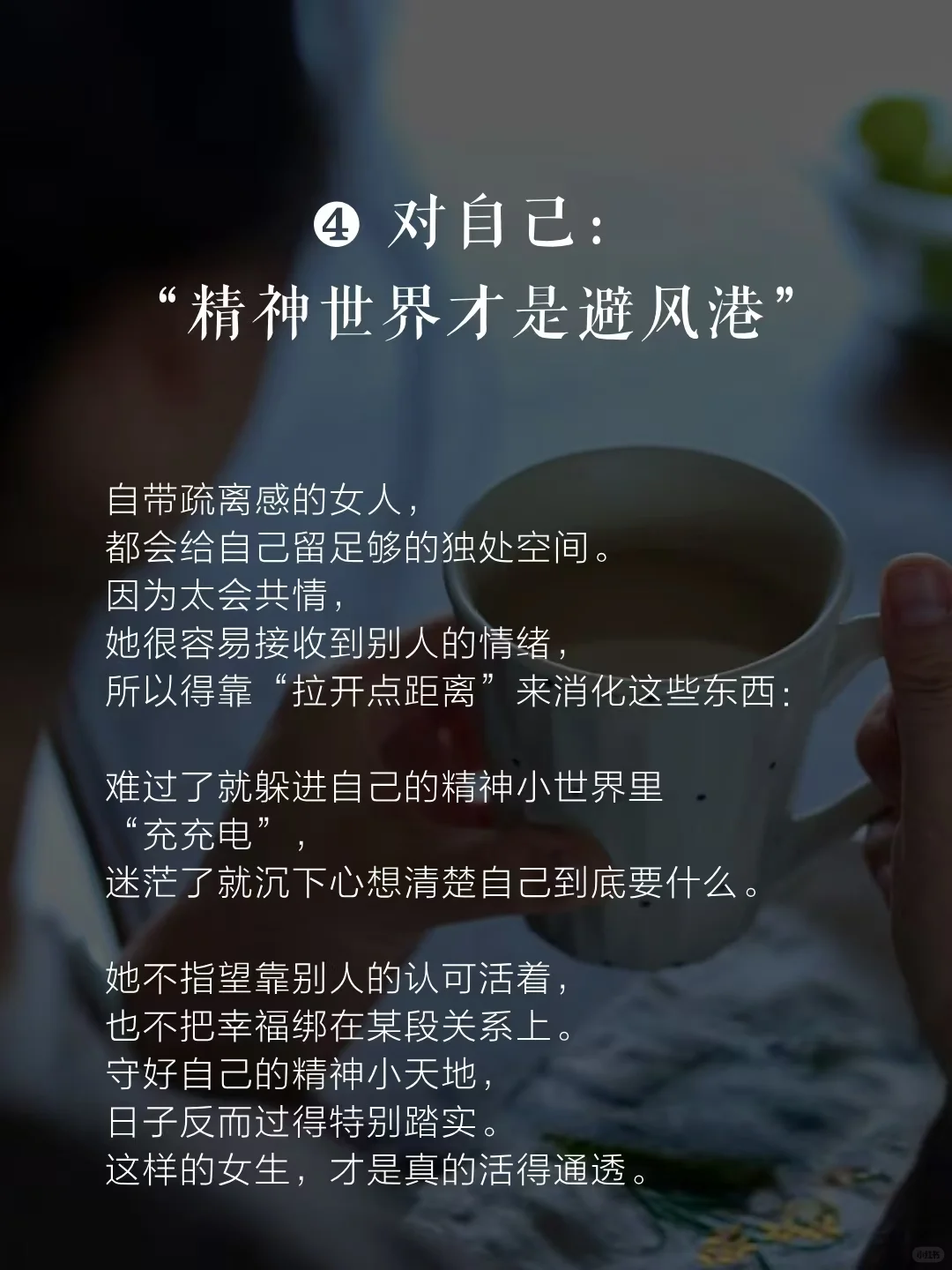 ❹ 对自己:“精神世界才是蕞后的避风港”