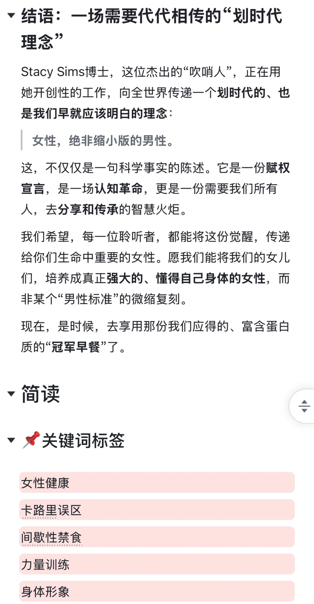 别慌!如果你想系统地了解专为女性生理周期设计的饮食和训练法,我已经把stacysims教授所有的核心观点和避坑指南,都整理进了【stacysims博士中文知识库】。