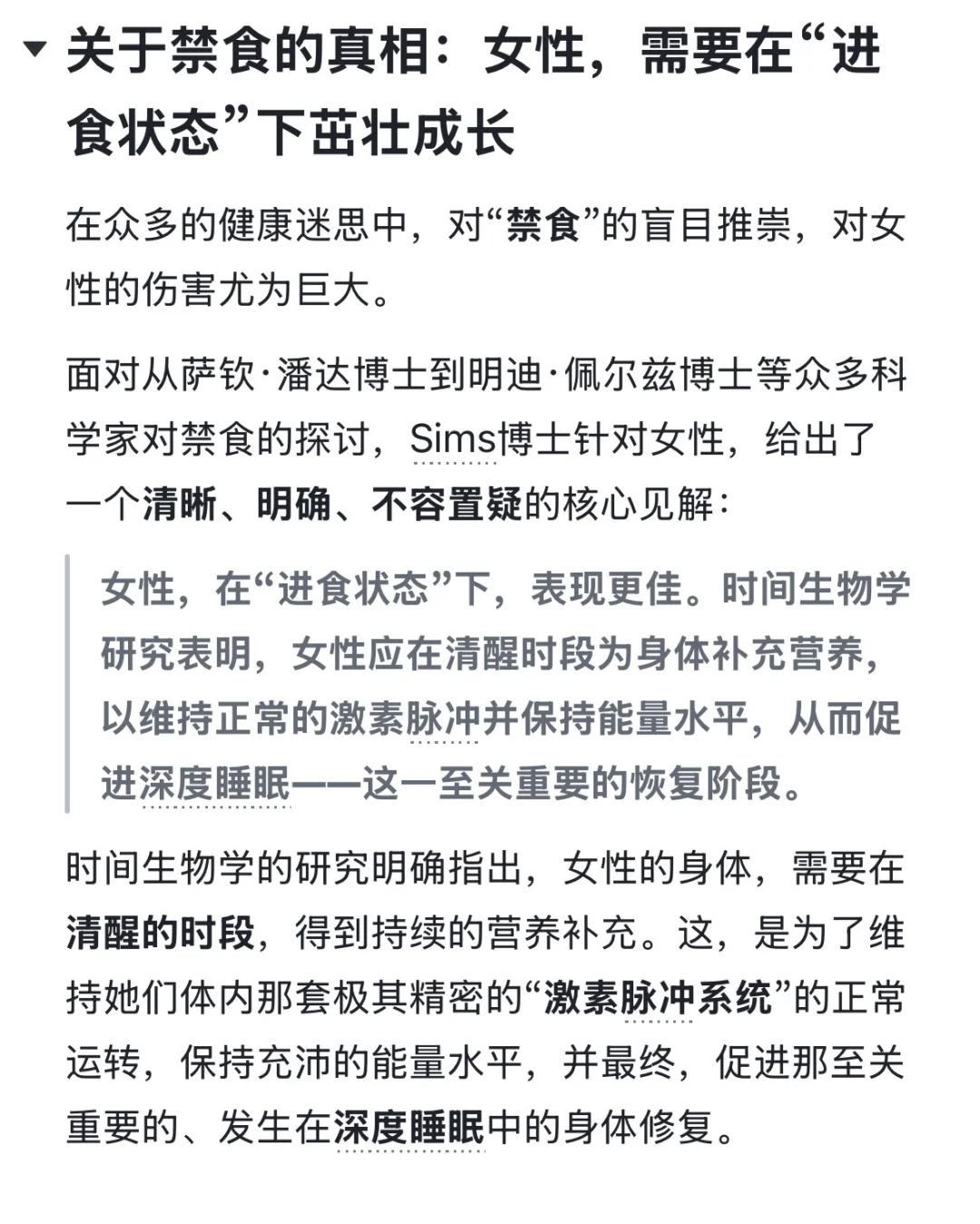 博士一针见血:把人体当成简单的“加减法”机器,是最大的误区!女性的激素、代谢远比男性复杂。你吃什么、什么时候吃,远比吃了多少卡路里重要得多!只算热量,就是在忽视你身体的真实需求!🤯