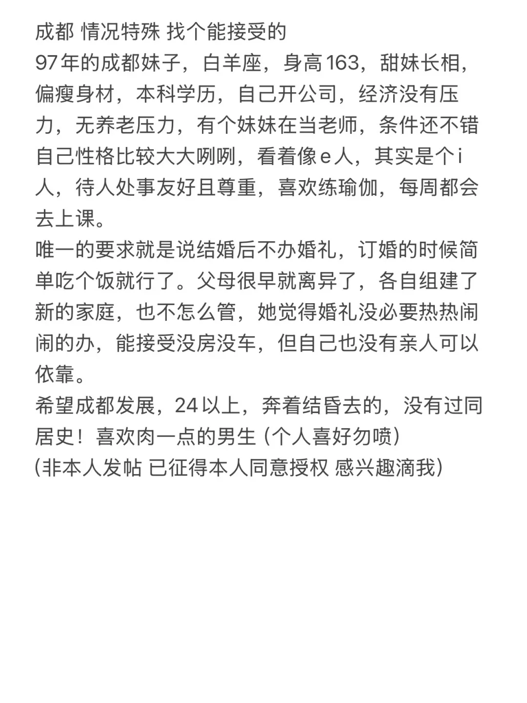 成都情况特殊 找个能接受的好难(重发版)