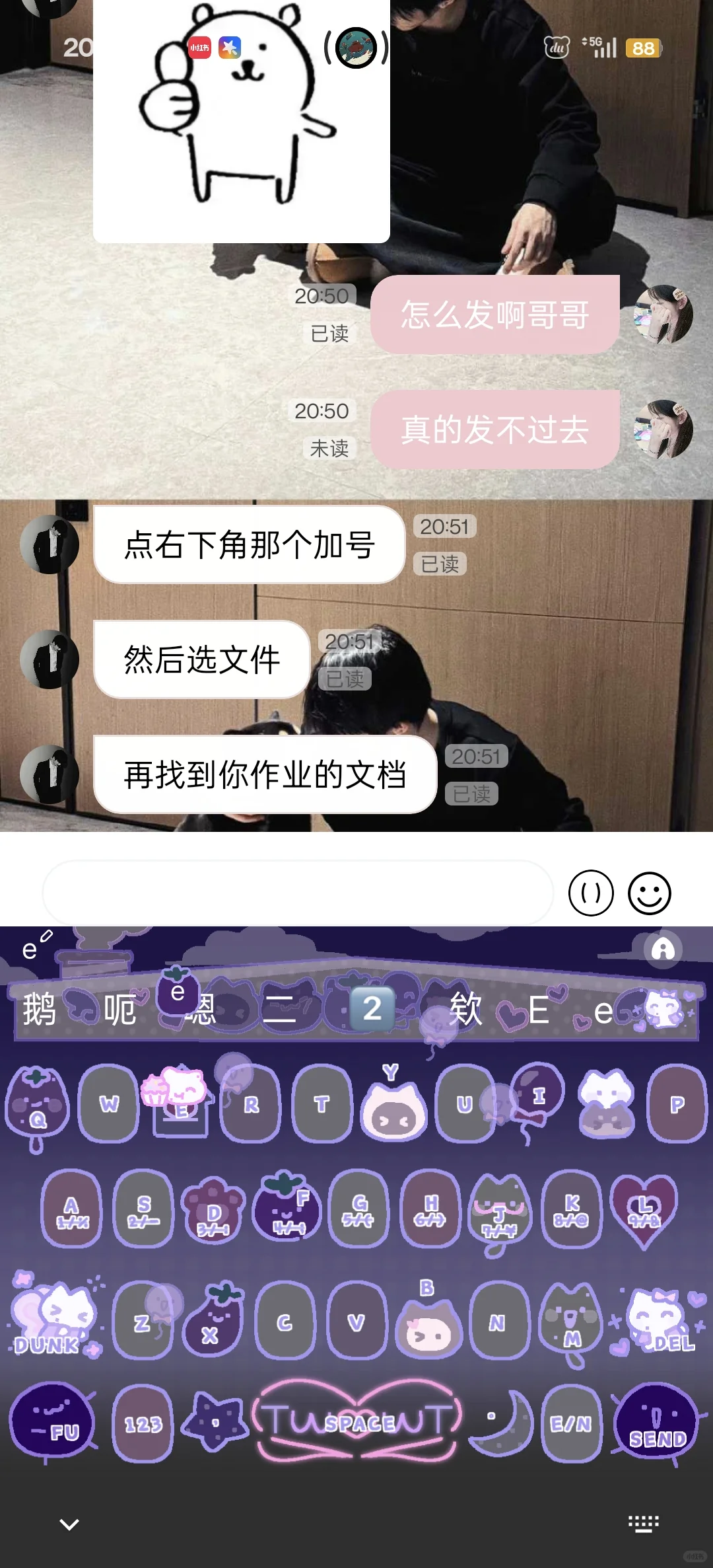 这个马嘉祺是想干嘛一直在让我发作业 lovemo不能发图片还试图教会我发图片我真不行了
