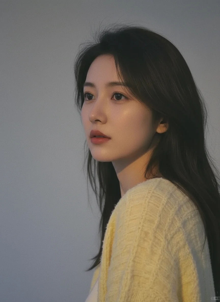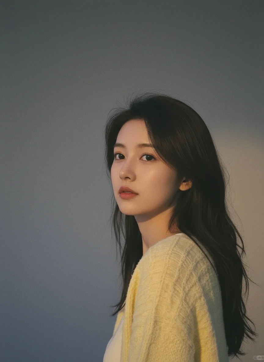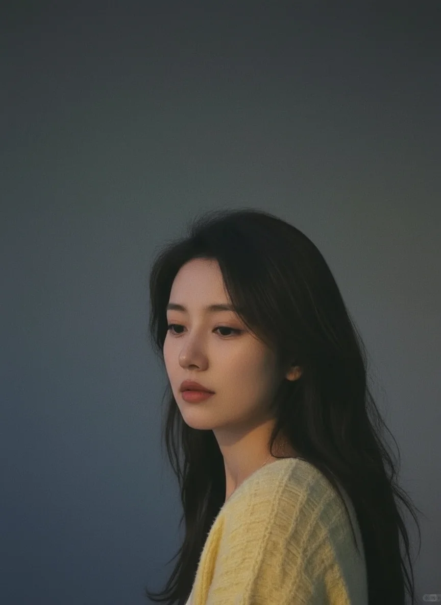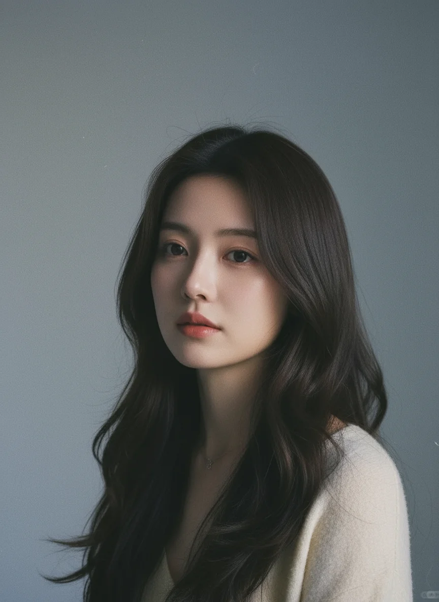 将上传的照片转换成高分辨率的韩系高级肖像艺术作品,背景呈现柔和渐变效果,营造出层次感与寂静氛围。细腻的胶片颗粒质感为画面增添了一种可触摸的、模拟摄影般的柔和质地,让人联想到经典的灰色背景摄影。画面中的人物非传统的摆拍,而像是被捕捉于思索或呼吸之间的瞬间。他的脸部因为光线的轮廓,唤起神秘、优雅之感。他的五官精致而深刻,散发出忧郁与诗意之美。一束温柔的定向光,柔和地漫射在他的面颊曲线,或在眼中闪现光点,这是画面的情感核心。其余部分以大量负空间占据,保持简洁,画面中没有文字、标志——只有光影与情绪交织。整体氛围仿佛一瞥即逝的目光,有种令人怅然的美。发型是韩系温柔波浪发型。要求没有实物的背景,每张照片换不同的动作。
