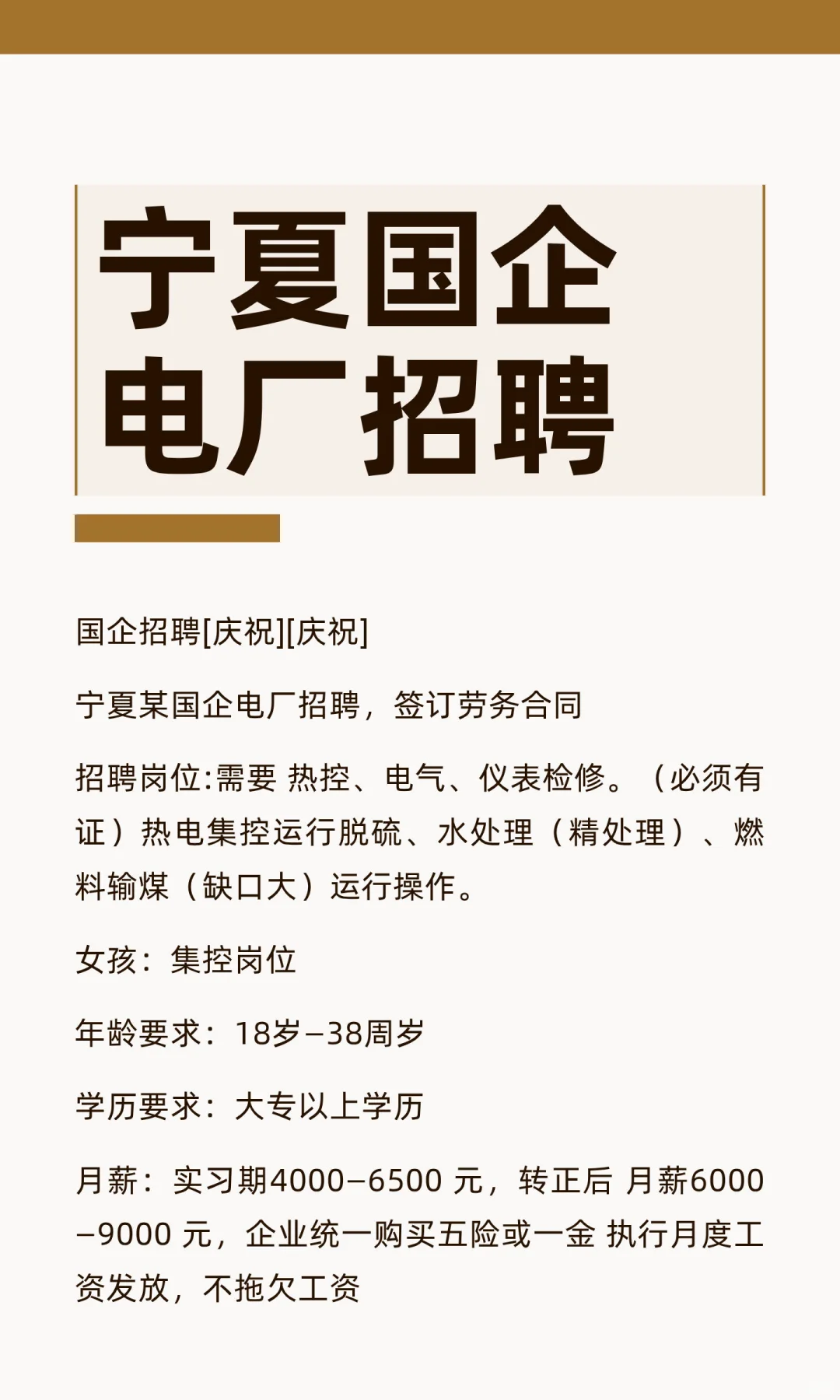 宁夏国企电厂招聘