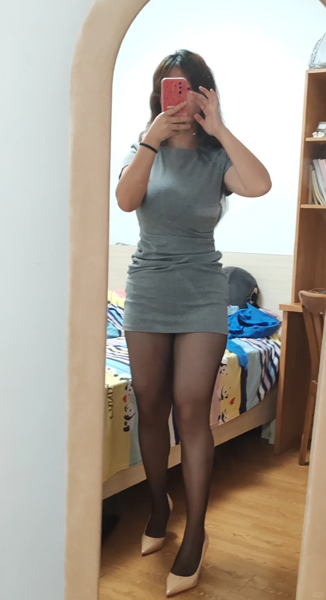 平平无奇的衣服,加上黑丝瞬间变的时尚,最好配上高跟鞋