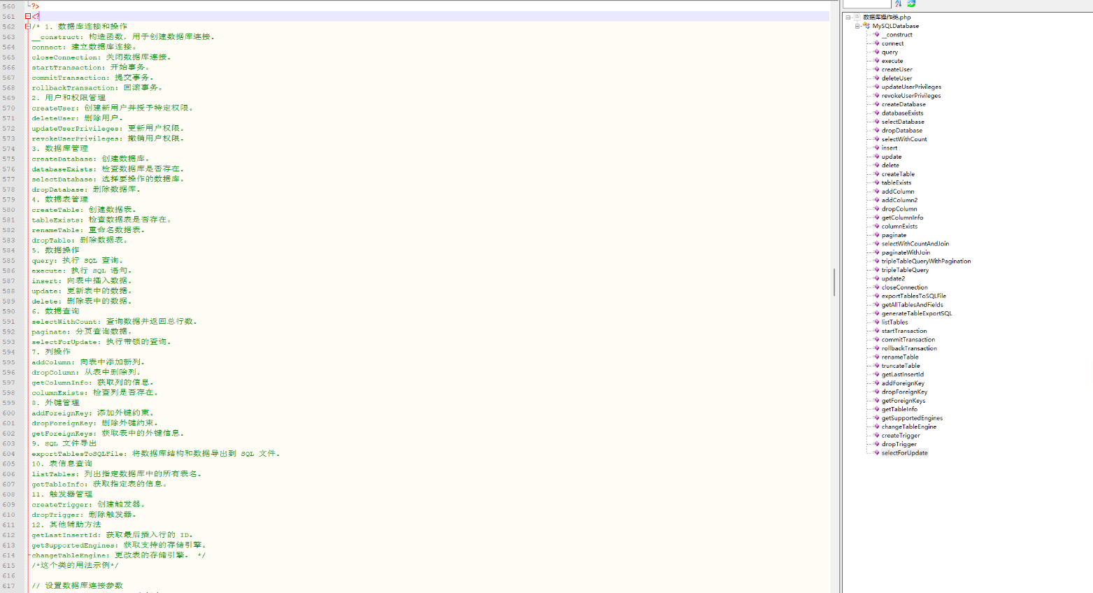 这些方法在源码中,都提供了示例和详细的备注,一般的数据库类只提供了增删改查,而这个类提供了更为丰富的功能,能够执行更多复杂的数据库操作