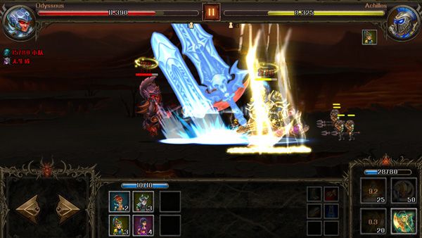 这款来自国外的RPG网游简直是中世纪风格神话战争游戏的楷模,虽然说是中世纪风格,但是史诗英雄里赫然看到了猴哥的身影(不过变成母猴子了),可见这款游戏还是世界文化融合的先驱。进入真正的战斗界面后确又让咱想到了魔兽争霸,技能栏、物品装备栏、兵种栏。这怕是一款有后台的手游巨作。