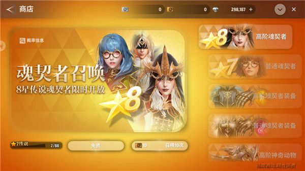 通过主界面的[召唤]按钮,大家可以进入到召唤商店中,进行普通魂契者召唤/高阶魂契者召唤,值得一提的是,高阶魂契者召唤每日可以免费召唤1次!