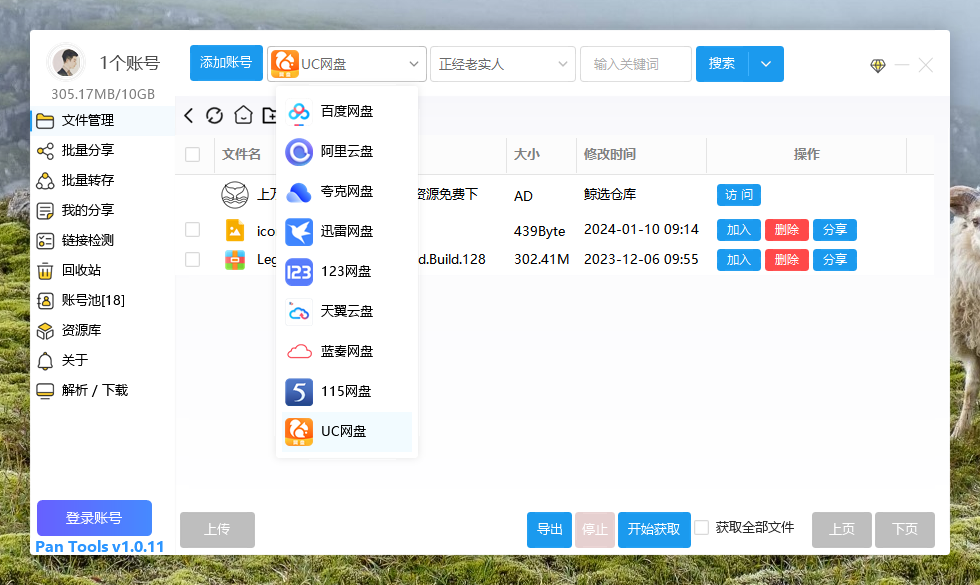 PanTools v1.0.11 多网盘批量管理工具 批量分享、转存、检测