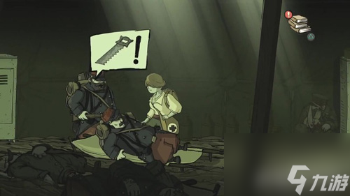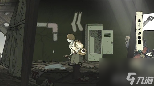 2.在帐篷里左边的柜子可以收集到袜子,最右边的柜子里取出锯子,为伤员进行截肢手术。